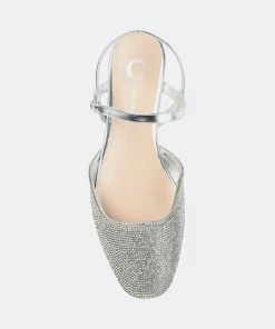 Catch eyes in the best way possible with the Nysha flats by Journee Collection. This square-toed flat serves up glitz and glam without the fuss with man-made materials covered in shimmering rhinestones. A low block heel adds a little lift, and a 4 mm Tru Comfort Foam™ insole adds the perfect amount of cushion.Heel Height:1/2-inchHeel Type: Block Heel Platform Height:Flat-inchShoe Width: MediumClosure Type: BuckleStrap Type: AnkleToe Style: SquareLining: Faux LeatherUpper Material: Man-madeOutersole Material: Man-madeFootbed: 4 MM Tru Comfort Foam™All measurements are approximate and were taken using a size 6. Please note measurements may vary slightly by size.