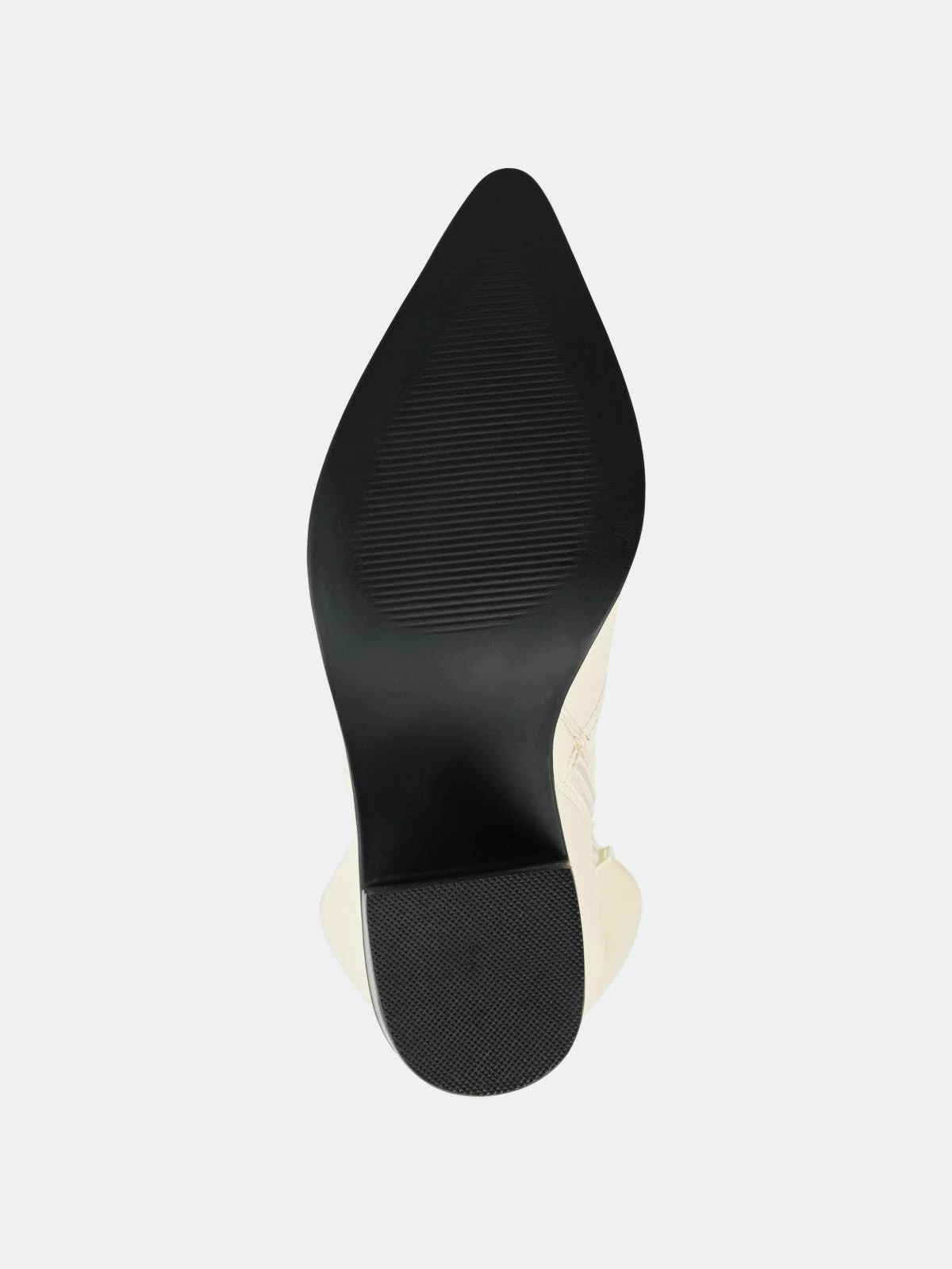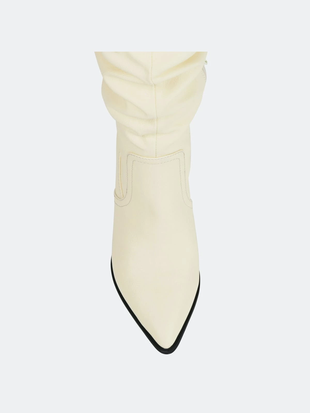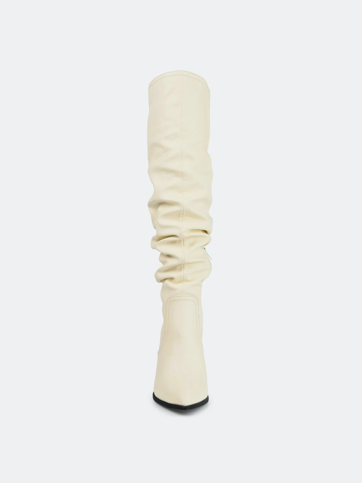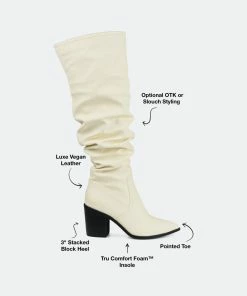 Simply chic, the Pia by Journee Collection. This over-the-knee boot adds an elevated finish to any outfit with its slouchy details and pointed-toe. A supportive 4 mm Tru Comfort Foam™ insole, vegan leather, and stacked block heel complete this upscale design.Heel Height: 3-inch. Heel Type: Stacked. Platform Height: Flat-inch. Shaft Height: 19 1/2 inches. Calf Circumference: 15 inches. Top Circumference: 17 inches. Shoe Width: Medium. Closure Type: Inside Zip. Toe Style: Pointed. Lining: Fabric. Upper Material: Vegan Leather. Outersole Material: Man-made. Footbed: 4 MM Tru Comfort Foam™. All measurements are approximate and were taken using a size 6. Please note measurements may vary slightly by size.
