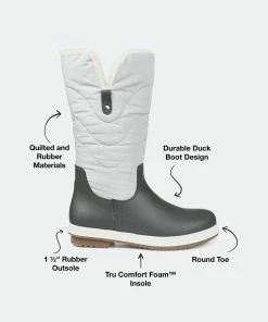 Upgrade your winter look with the Pippah by Journee Collection. These warm mid-calf boots feature a teddy bear fur lining, a 4 mm Tru Comfort Foam™ footbed, and a quilted shaft. A duck toe, metal hardware, and thick sole complete the design.Heel Height: 1 1/2-inch. Heel Type: Block Heel. Platform Height: 1-inch. Shaft Height: 11 1/2 inches. Calf Circumference: 14 1/2 inches. Top Circumference: 14 1/2 inches. Shoe Width: Medium. Closure Type: Pull-on. Toe Style: Round. Lining: Faux Fur. Upper Material: Man-made. Outersole Material: Man-made. Footbed: 4 MM Tru Comfort Foam™. All measurements are approximate and were taken using a size 6. Please note measurements may vary slightly by size.