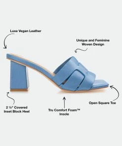 From jeans to dresses, the Renatta by Journee Collection styles well with just about everything. This slip-on silhouette features vegan leather uppers detailed with an open toe and an interlocking strap design. Thanks to the 4 mm Tru Comfort Foam™ insole, you can walk comfortably even with the height.Heel Height:2 1/2-inchHeel Type: Block Heel Platform Height:Flat-inchShoe Width: MediumClosure Type: Slip-onStrap Type: Multi -StrapToe Style: OpenLining: Faux LeatherUpper Material: Vegan LeatherOutersole Material: Man-madeFootbed: 4 MM Tru Comfort Foam™All measurements are approximate and were taken using a size 6. Please note measurements may vary slightly by size.