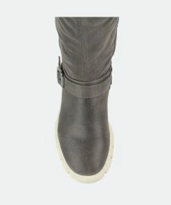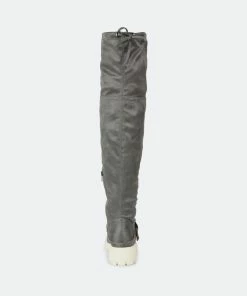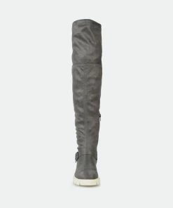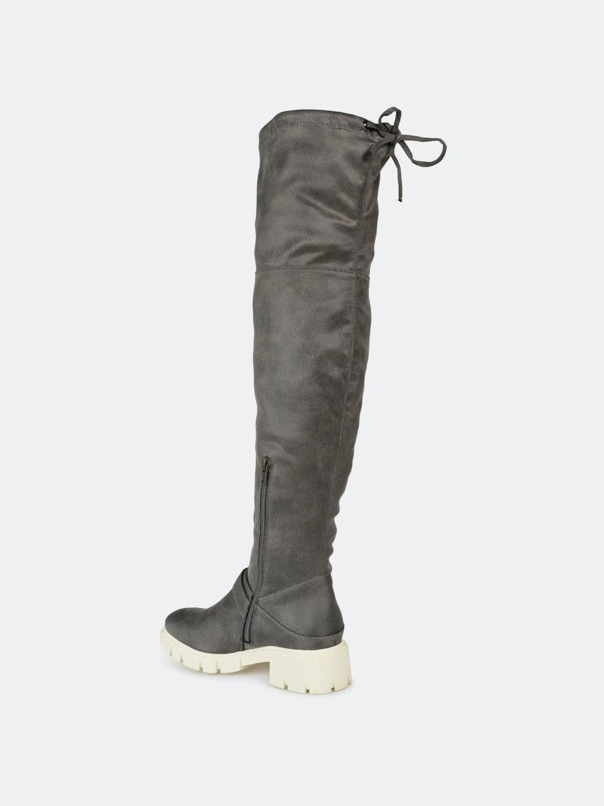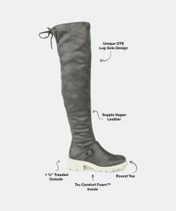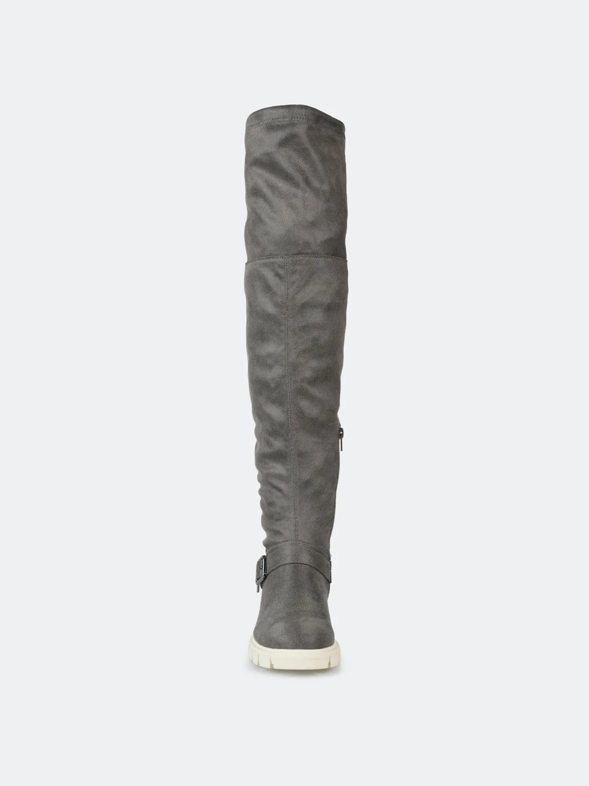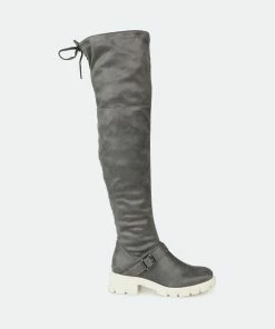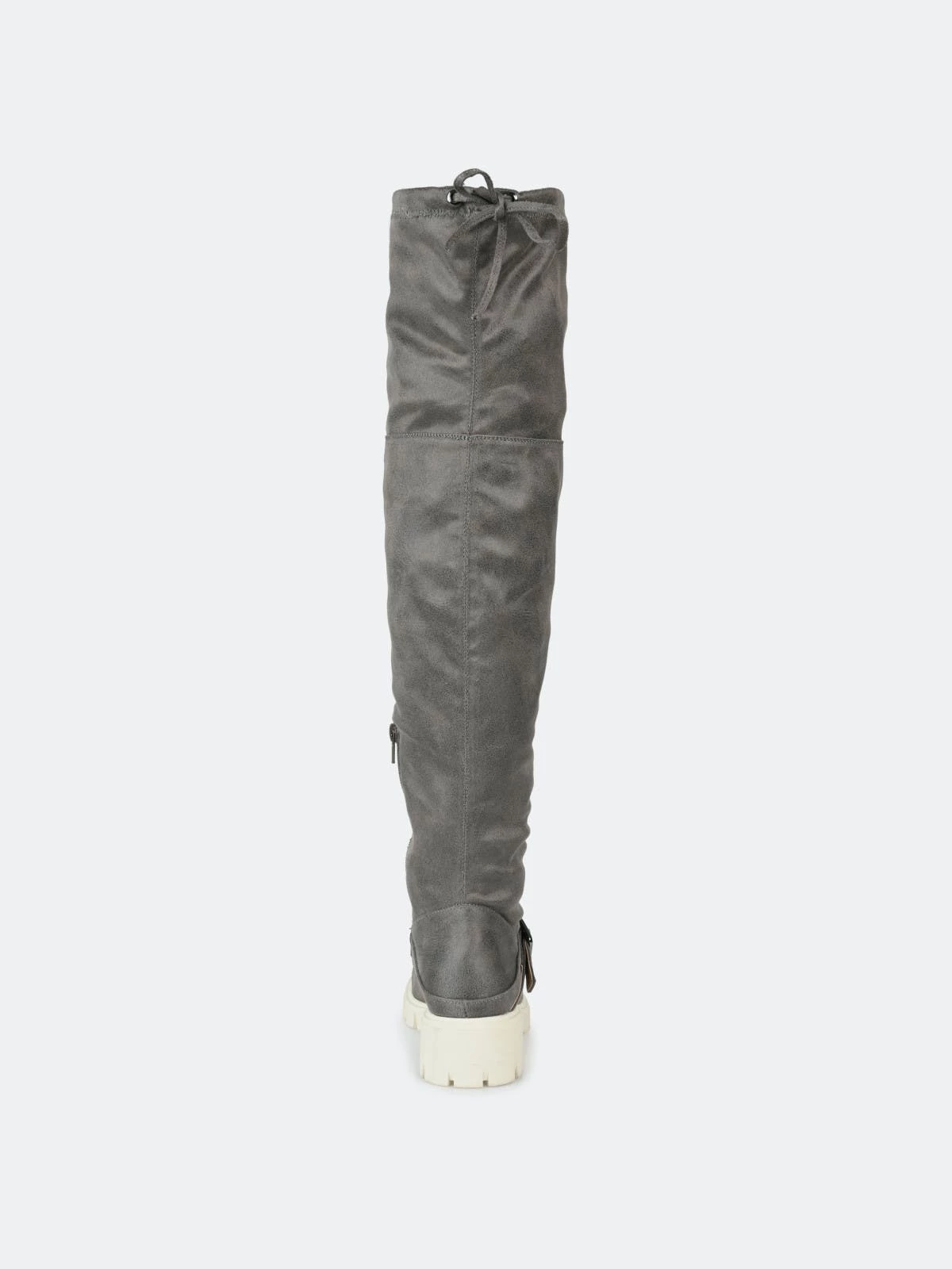 Make a bold move in the Salisa boot by Journee Collection. This over-the-knee boot features an adjustable tie, a 4 mm Tru Comfort Foam™ footbed, and supple vegan leather for a comfortable fit. A chic lug sole and buckled strap finish this must-have.Heel Height: 1 3/4-inch. Heel Type: Block Heel. Platform Height: 1-inch. Shaft Height: 21 1/2 inches. Calf Circumference: 14 inches. Top Circumference: 17 1/2 inches. Shoe Width: Medium. Closure Type: Inside Zip. Toe Style: Round. Lining: Fabric. Upper Material: Vegan Leather. Outersole Material: Man-made. Footbed: 4 MM Tru Comfort Foam™. All measurements are approximate and were taken using a size 6. Please note measurements may vary slightly by size.