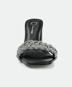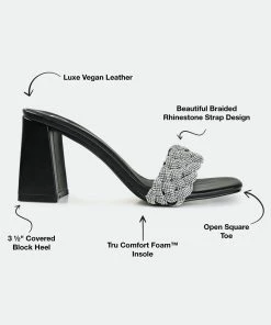 Sparkly details crown this weekend look. The Sashaa by Journee Collection features vegan leather uppers complemented by a 4 mm Tru Comfort Foam™ footbed for a comfortable fit. A braided band at the toe and a chunky block heel define the shape.Heel Height:3 1/2-inchHeel Type: Block Heel Platform Height:Flat-inchShoe Width: MediumClosure Type: Slip-onToe Style: OpenLining: Faux LeatherUpper Material: Man-madeOutersole Material: Man-madeFootbed: 4 MM Tru Comfort Foam™All measurements are approximate and were taken using a size 6. Please note measurements may vary slightly by size.