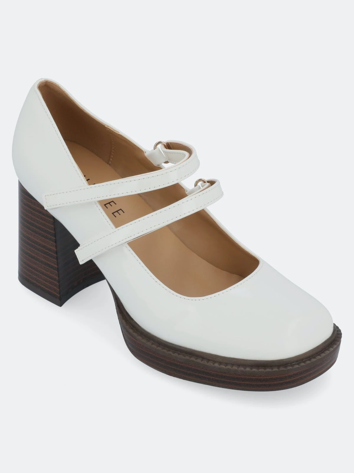 Shasta heels from Journee Collection will be the perfect shoe for when you want to rock a look no one will forget. With their 4 mm Tru Comfort Foam™ insole, patent luxe vegan leather, platform heel, stacked block heel and double strap and hook loop closure, this style takes you from old to bold. A mary jane style like this is practically a guarantee to get you compliments.