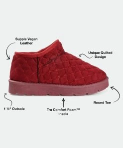 Comfort comes easy with the Tazara slipper by Journee Collection. This quilted slipper is designed with supple vegan leather lined with the softest faux fur for extra warmth. A 6 mm Tru Comfort Foam™ footbed adds the right amount of support, and a treaded outsole provides durability so you can wear them out too.Heel Height: 1 1/2-inch. Heel Type: Sole. Platform Height: 1-inch. Shaft Height: 3 inches. Top Circumference: 13 inches. Shoe Width: Medium. Closure Type: Slip-on. Toe Style: Round. Lining: Faux Fur. Upper Material: Vegan Leather. Outersole Material: Man-made. Footbed: 6 MM Tru Comfort Foam™. All measurements are approximate and were taken using a size 6. Please note measurements may vary slightly by size.