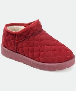Comfort comes easy with the Tazara slipper by Journee Collection. This quilted slipper is designed with supple vegan leather lined with the softest faux fur for extra warmth. A 6 mm Tru Comfort Foam™ footbed adds the right amount of support, and a treaded outsole provides durability so you can wear them out too.Heel Height: 1 1/2-inch. Heel Type: Sole. Platform Height: 1-inch. Shaft Height: 3 inches. Top Circumference: 13 inches. Shoe Width: Medium. Closure Type: Slip-on. Toe Style: Round. Lining: Faux Fur. Upper Material: Vegan Leather. Outersole Material: Man-made. Footbed: 6 MM Tru Comfort Foam™. All measurements are approximate and were taken using a size 6. Please note measurements may vary slightly by size.