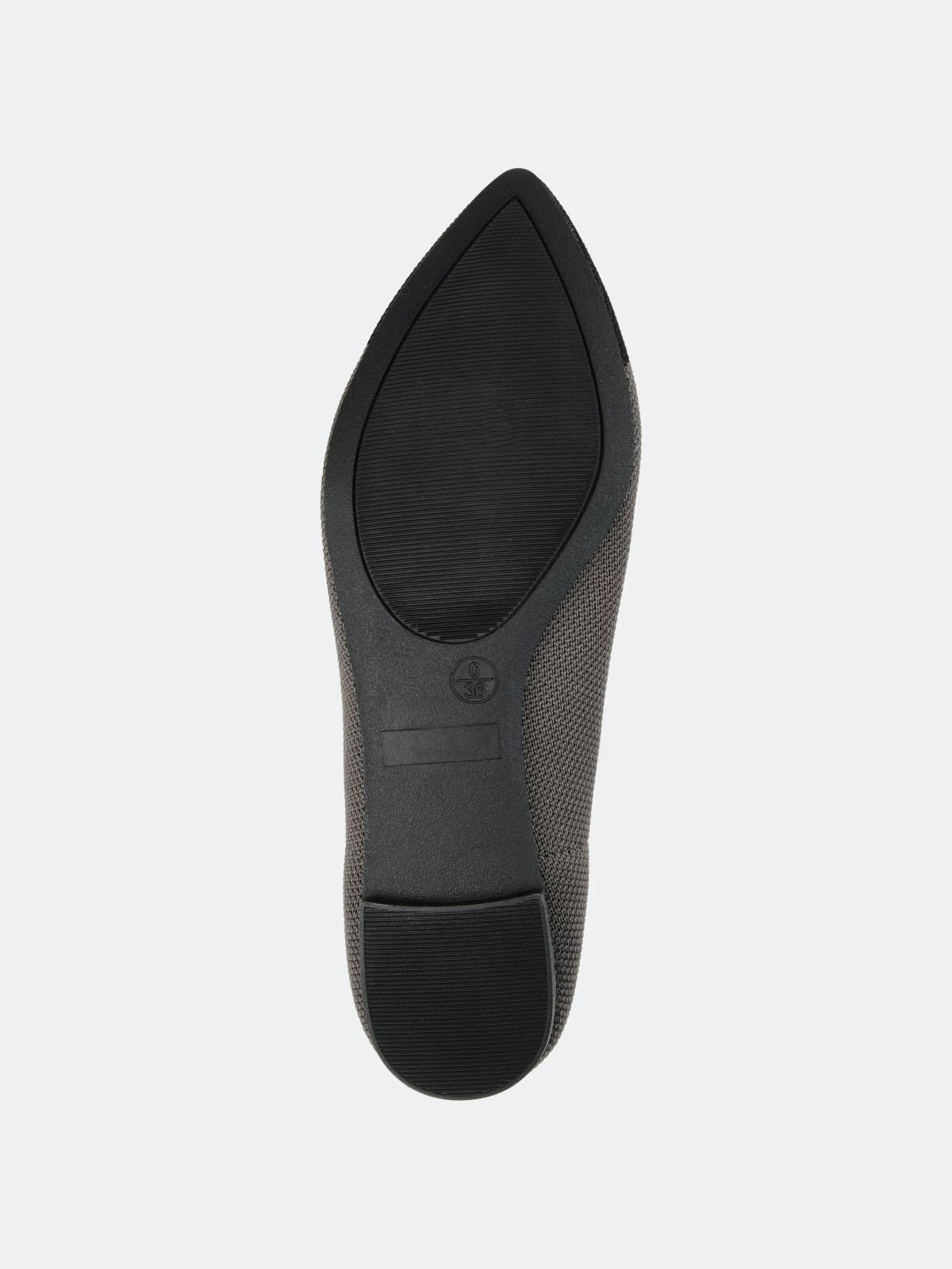 Simply chic, these soft knit ballet flats by Journee Collection are easy to pair and easy to wear. The Veata features a sweetheart shaped topline and pointed-toe for a touch of sophistication. A 4 mm Tru Comfort Foam™ footbed finishes the design and keeps you on your feet with ease.FlatHeel Type: Sole Platform Height:Flat-inchShoe Width: MediumClosure Type: Slip-onToe Style: PointedLining: FabricUpper Material: FabricOutersole Material: RubberFootbed: 4 MM Tru Comfort Foam™All measurements are approximate and were taken using a size 6. Please note measurements may vary slightly by size.