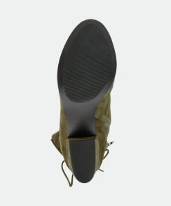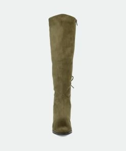 Change it up with the Wide Calf Leeda boot by Journee Collection. This adorable heeled boot features a lace-up detail in the back with a bow to finish it off. There is also a stretch gore on the side as needed to extend. You’ll look fabulous in this beautiful faux suede heeled boot.Heel Height: 2 3/4-inch. Heel Type: Block Heel. Platform Height: 1/2-inch. Shaft Height: 16 inches. Calf Circumference: 15 inches. Top Circumference: 15 1/2 inches. Shoe Width: Medium. Closure Type: Inside Zip. Toe Style: Almond. Lining: Faux Fur. Upper Material: Faux Suede. Outersole Material: Faux Suede over Synthetic. Footbed: 4 MM Tru Comfort Foam™. All measurements are approximate and were taken using a size 6. Please note measurements may vary slightly by size.