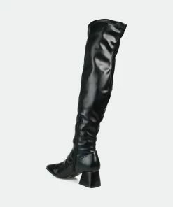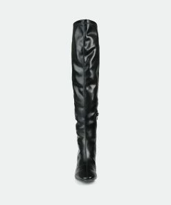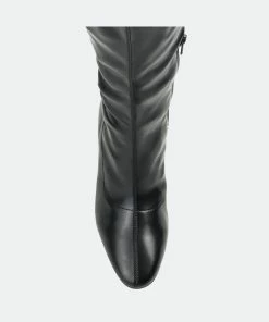 Add a dramatic style to your wardrobe with the Melika by Journee Collection. An almond-toe and a center seam detail give this wide-calf boot a simply chic look. This over-the-knee silhouette features vegan leather, a 4 mm Tru Comfort Foam™ insole, and a covered kicked-in block heel.Heel Height: 2 1/4-inch. Heel Type: Block Heel. Platform Height: Flat-inch. Shaft Height: 20 1/2 inches. Calf Circumference: 14 1/2 inches. Top Circumference: 17 inches. Shoe Width: Medium. Closure Type: Inside Zip. Toe Style: Almond. Lining: Fabric. Upper Material: Vegan Leather. Outersole Material: Man-made. Footbed: 4 MM Tru Comfort Foam™. All measurements are approximate and were taken using a size 6. Please note measurements may vary slightly by size.