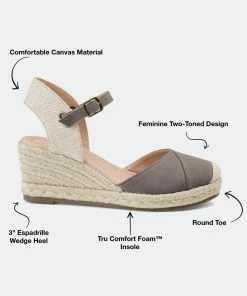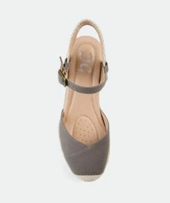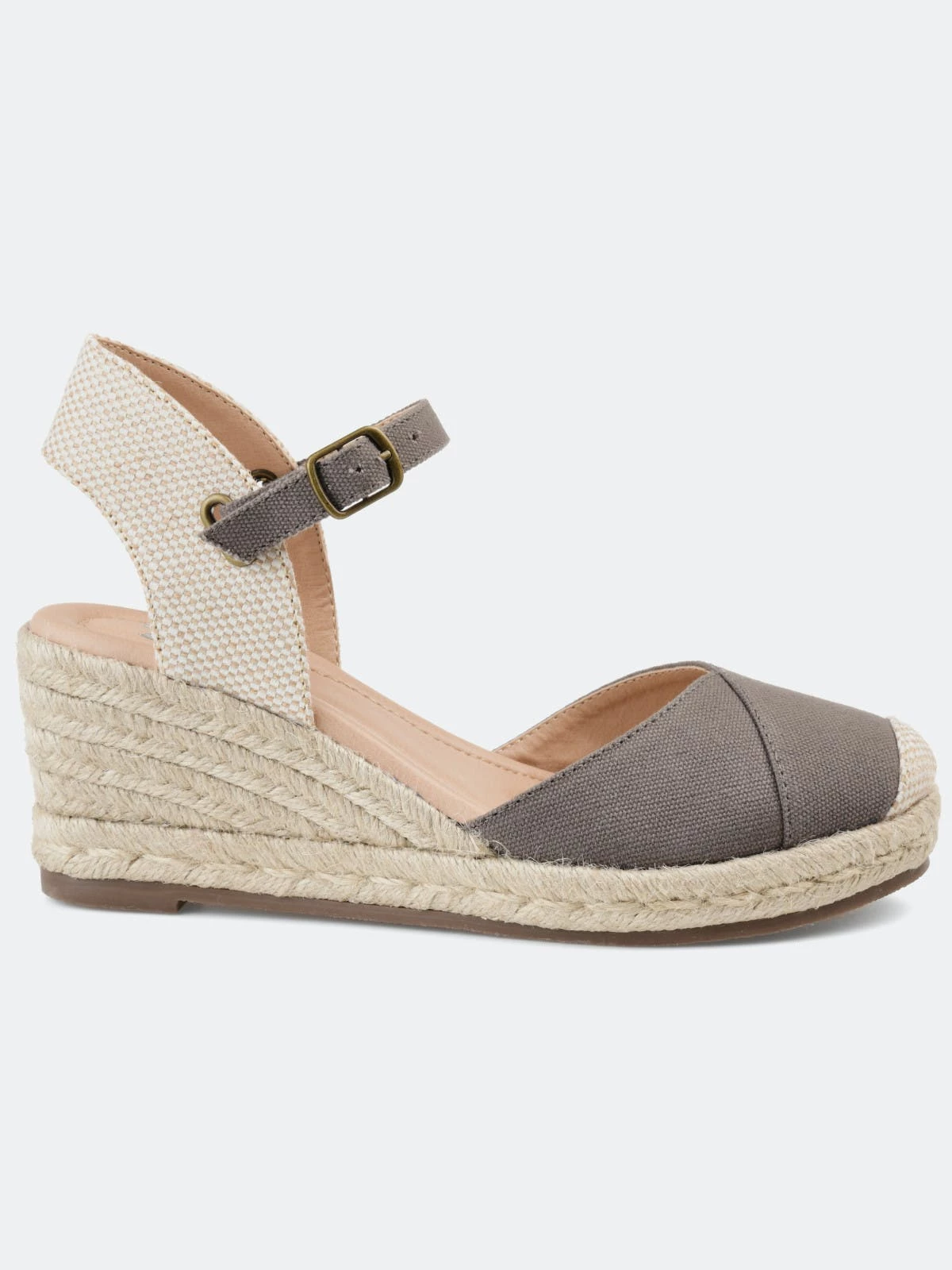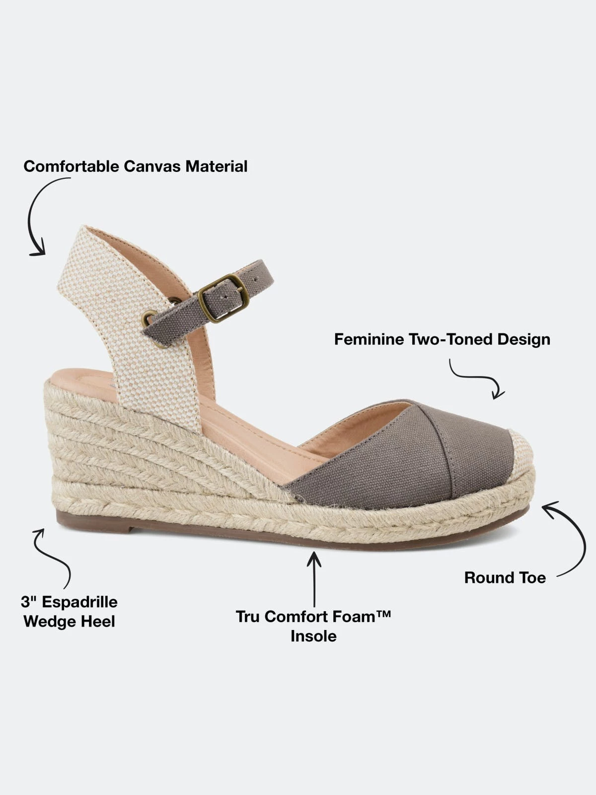 Step up your summer wardrobe with the Ashlyn by Journee Collection. Light canvas uppers beautifully contrast this wedge heel wrapped in braided espadrille. A 4 mm Tru Comfort Foam™ insole, wide-width footbed, and adjustable buckled strap finish the look, so it fits like a dream.Heel Height:3-inchHeel Type: Wedge Platform Height:1-inchShoe Width: WideClosure Type: BuckleStrap Type: AnkleToe Style: RoundLining: Faux LeatherUpper Material: CanvasOutersole Material: SyntheticFootbed: 4 MM Tru Comfort Foam™All measurements are approximate and were taken using a size 6. Please note measurements may vary slightly by size.
