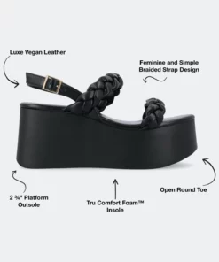 The Zannah platform sandal from Journee Collection will take you from boring to adoring in a flash. This design offers you all the stylish qualities you need to take you anywhere you want to go with their luxe vegan leather, braided strap design, buckle ankle strap, and open round toe. This summer essential keeps your feet comfortable with every step in its 4 mm Tru Comfort Foam™ footbed.