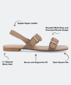 The Twylah sandal from Journee Collection is a classic summer staple you can pair with everything. Their supple vegan leather, multi-strap design, oversized buckle detail, sling back, and open square toe will be a classy yet casual look to take you anywhere you want to go without wearing the wrong shoe. As a bonus, their padded insole and pull-on closure will keep your feet comfortable for your daily needs.