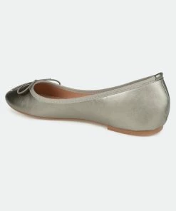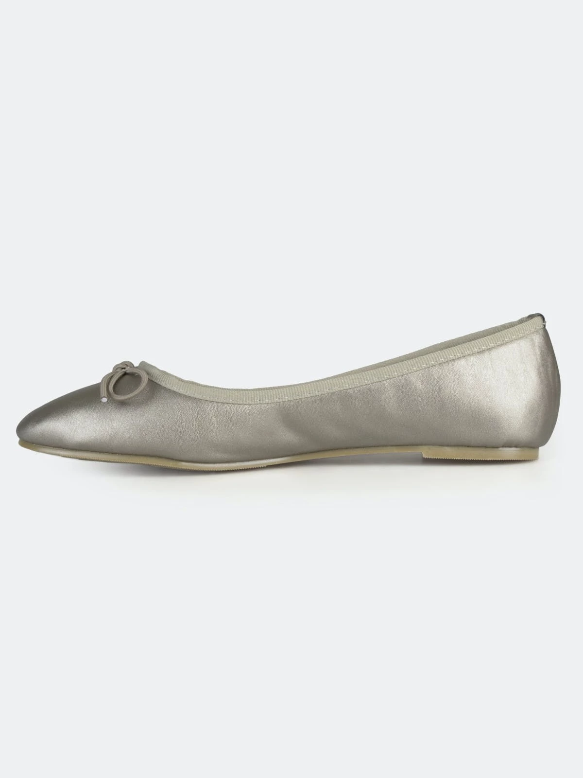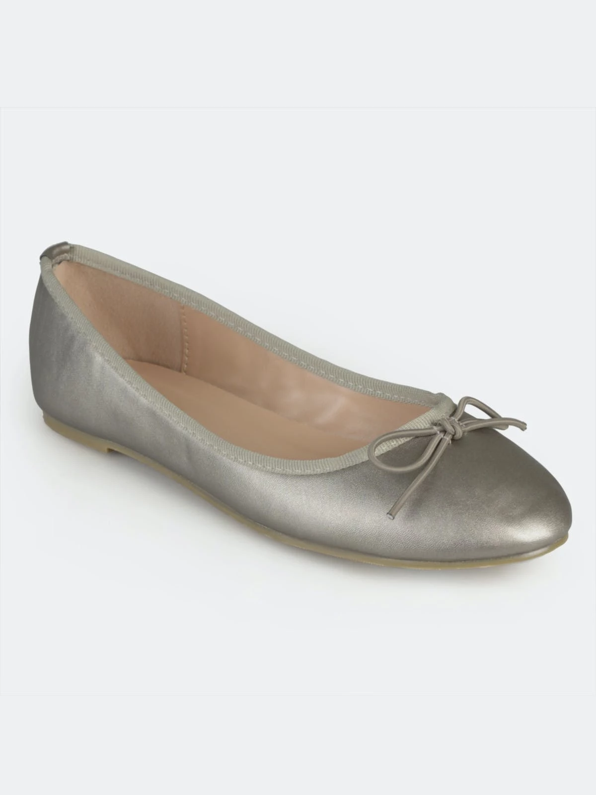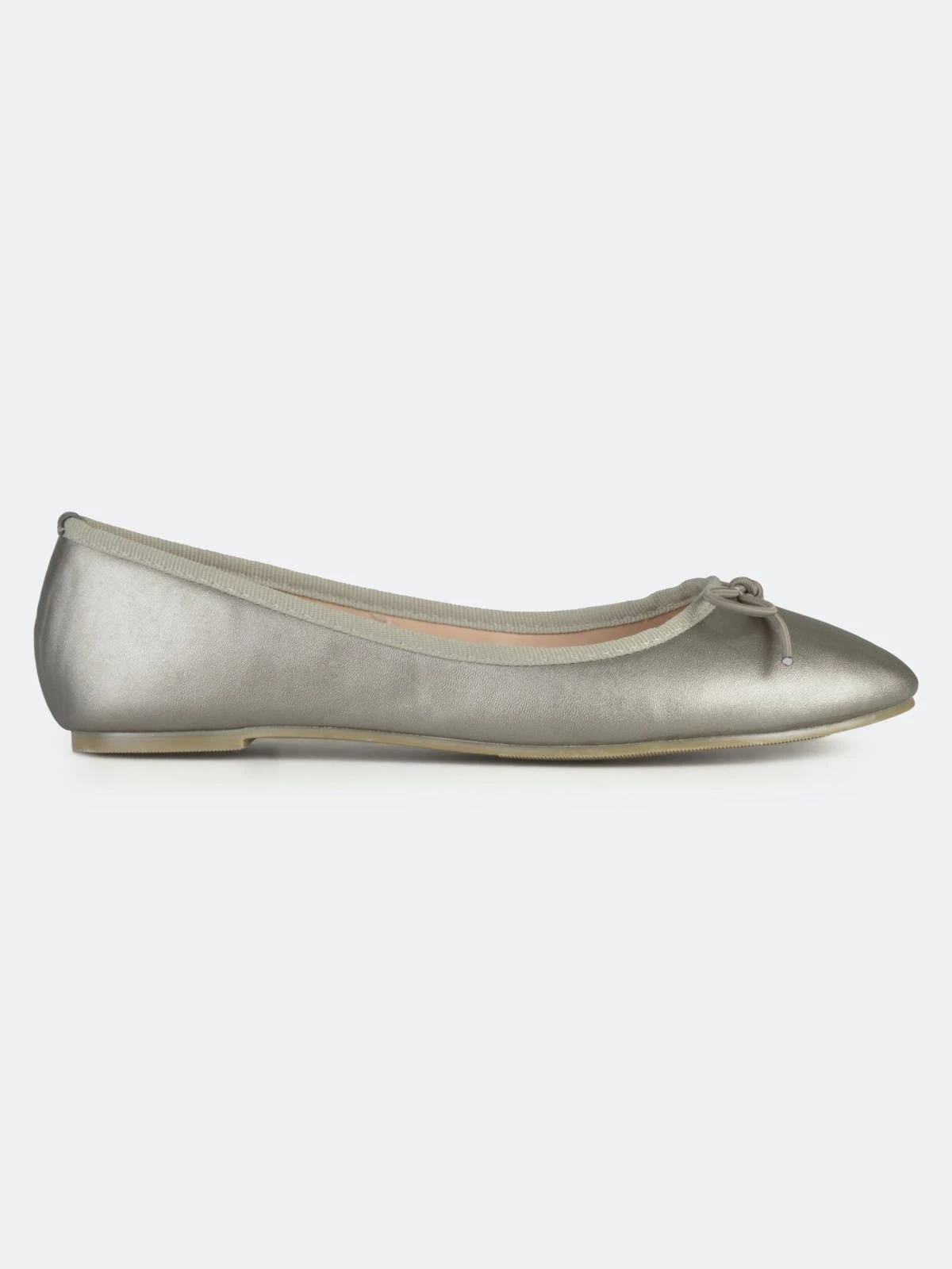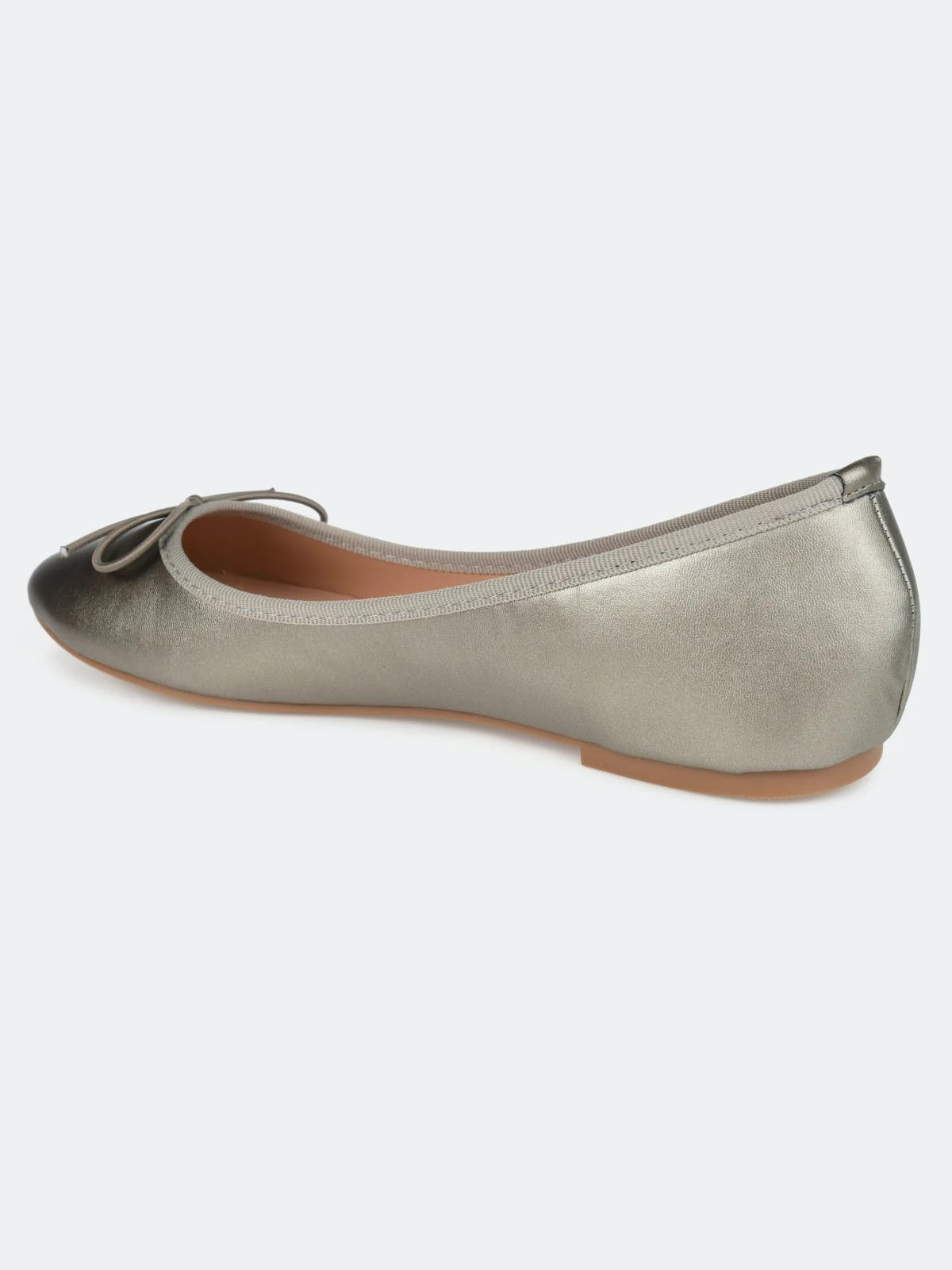 Express your feminine style in modern flats by Journee Collection. These stylish flat shoes feature smooth uppers and knit trim. Classic round toes with dainty bow accents and small block heels finish the design.FlatHeel Type: Sole Platform Height:1/2-inchShoe Width: MediumClosure Type: Slip-onToe Style: RoundLining: Faux LeatherUpper Material: Faux LeatherOutersole Material: Man-madeFootbed: PaddedAll measurements are approximate and were taken using a size 6. Please note measurements may vary slightly by size.