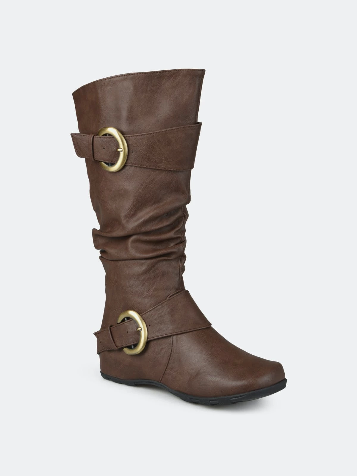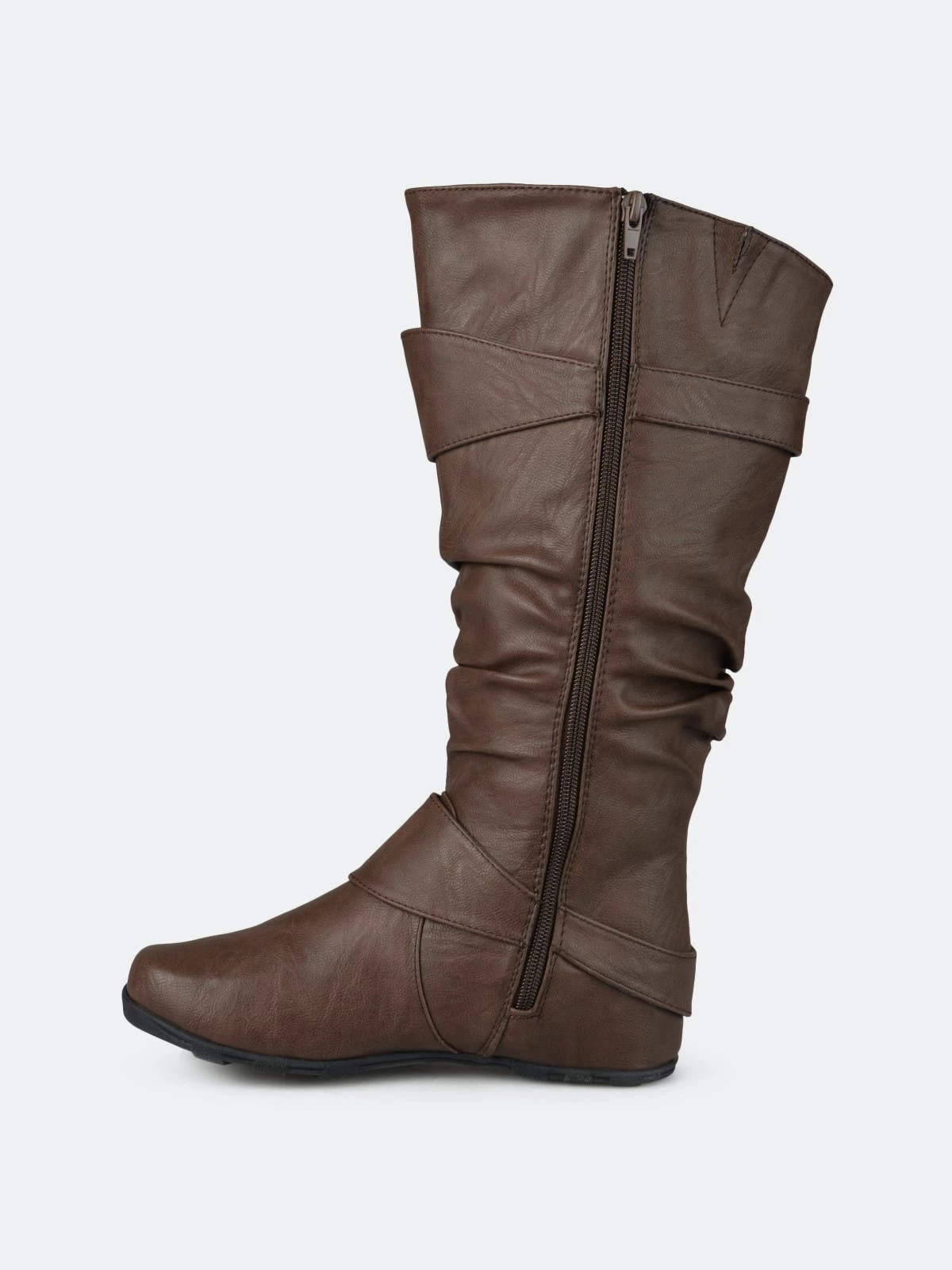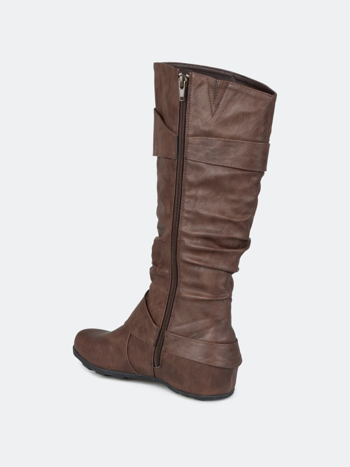 Show off one of the best styles of the season in tall wide-calf boots by Journee Collection. These fashion boots feature premium faux leather uppers with a wide-calf style that rises mid-calf.Heel Height: 1 1/4-inch. Heel Type: Hidden Wedge. Platform Height: 1/2-inch. Shaft Height: 11 1/2 inches. Calf Circumference: 16 1/4 inches. Top Circumference: 17 inches. Shoe Width: Medium. Closure Type: Inside Zip. Toe Style: Round. Lining: Fabric. Upper Material: Faux Leather. Outersole Material: Rubber. Footbed: Padded. All measurements are approximate and were taken using a size 6. Please note measurements may vary slightly by size.