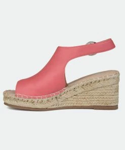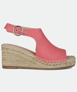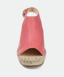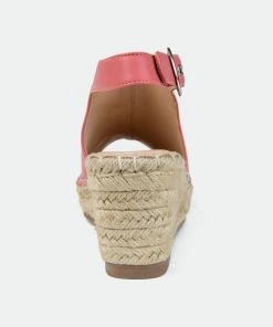 Walk in style and comfort this summer with the Crew by Journee Collection. Smooth vegan leather uppers with a buckled slingback strap top this espadrille covered wedge heel for an earthy look. A breezy open back, padded insole, and wide-width footbed complete the design for a practical finish.Heel Height:3-inchHeel Type: Wedge Platform Height:1-inchShoe Width: WideClosure Type: BuckleStrap Type: AnkleToe Style: OpenLining: Faux LeatherUpper Material: Faux LeatherOutersole Material: Man-madeFootbed: PaddedAll measurements are approximate and were taken using a size 6. Please note measurements may vary slightly by size.