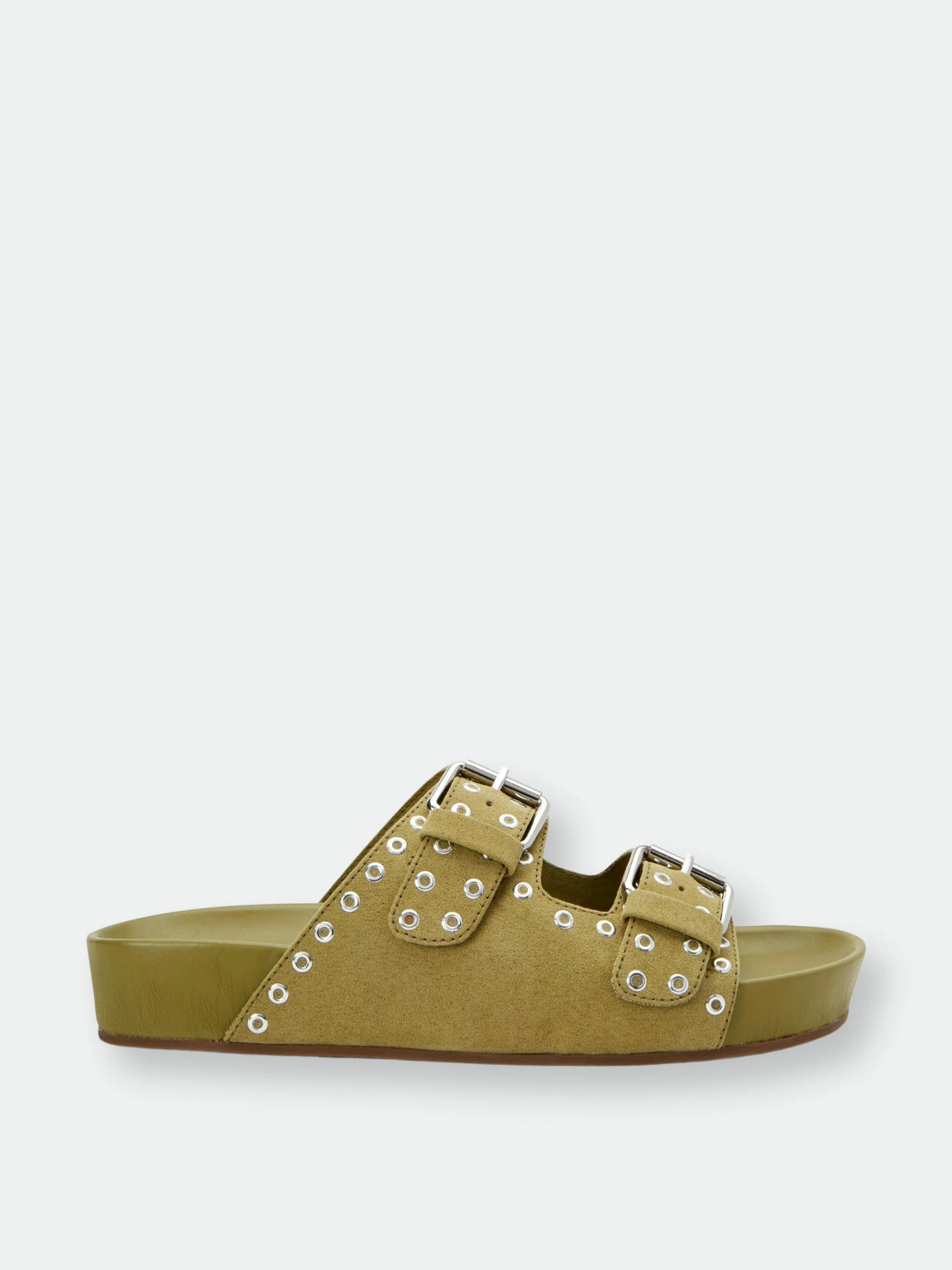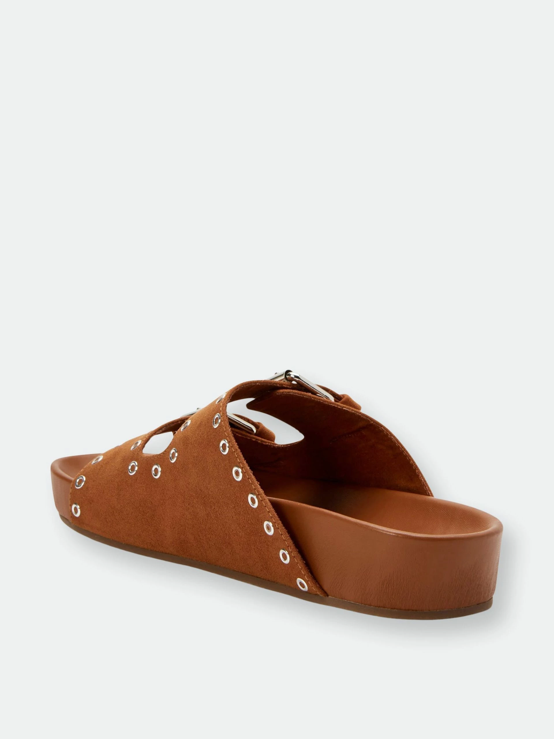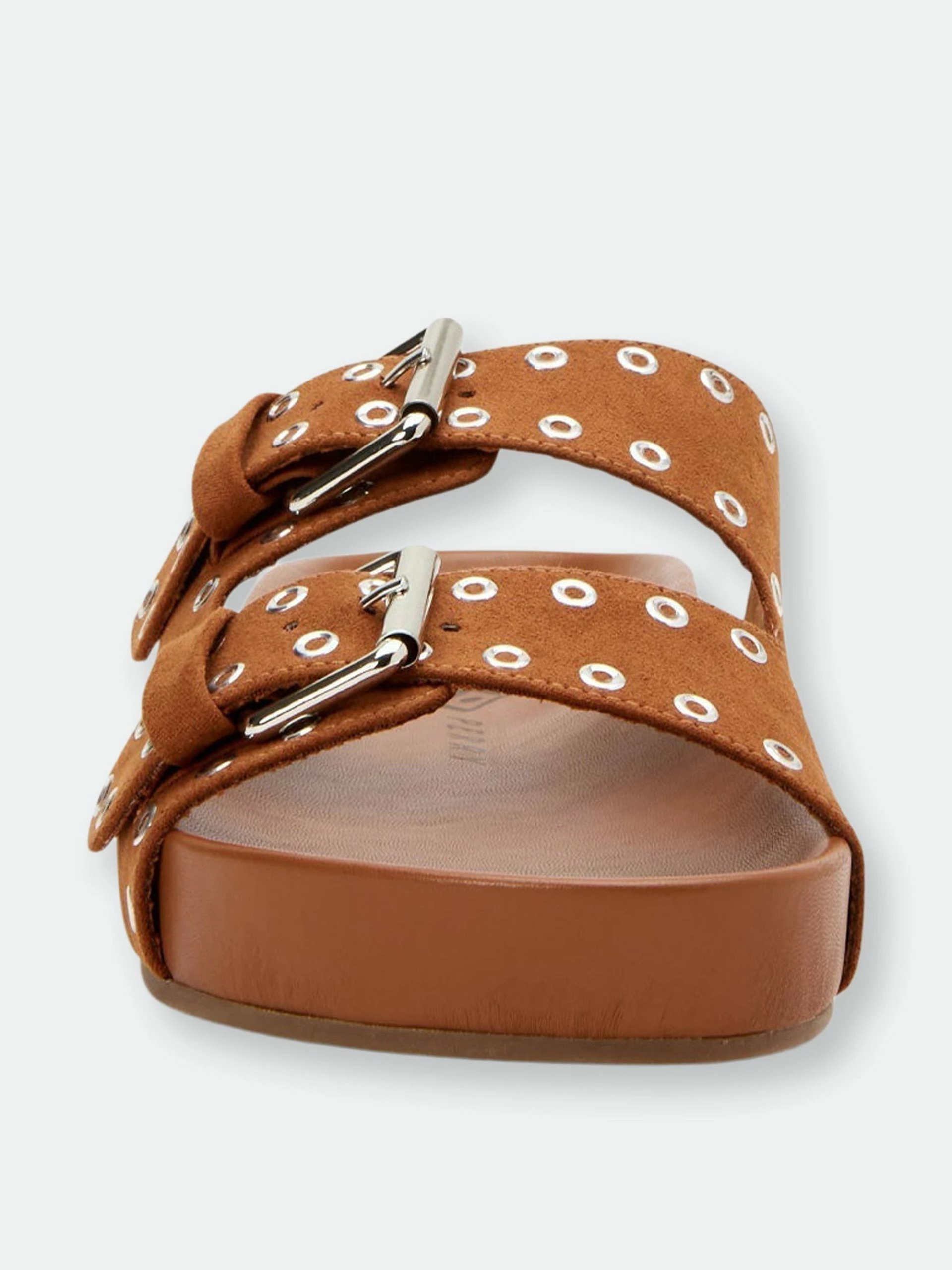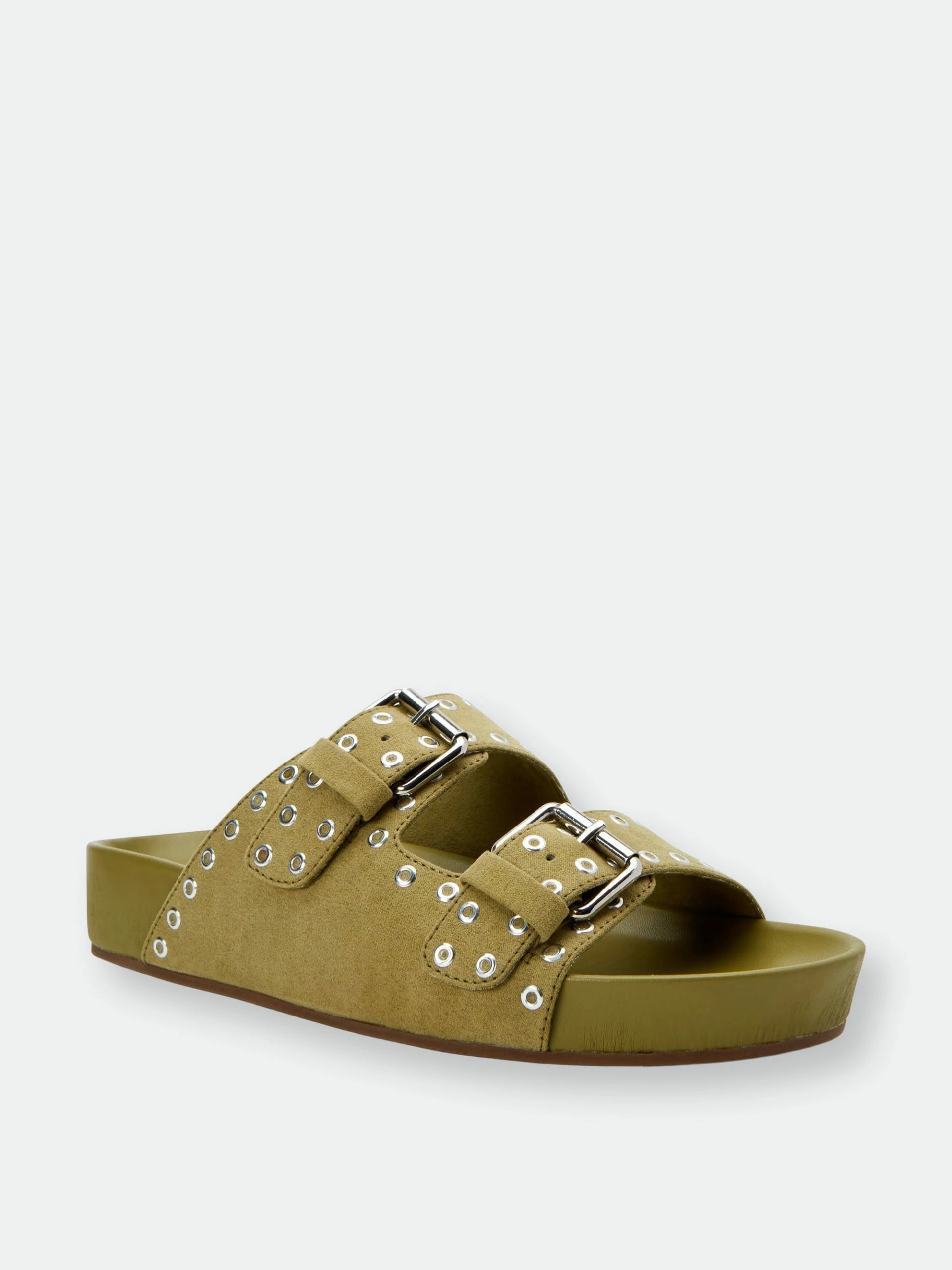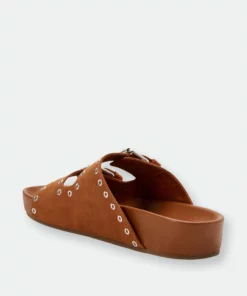 – Two Band adjustable buckle footbed slide slip on sandal in Microsuede- Fabric Upper- Fabric Lining .75 Inch Height