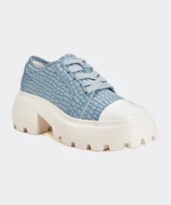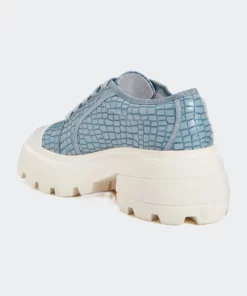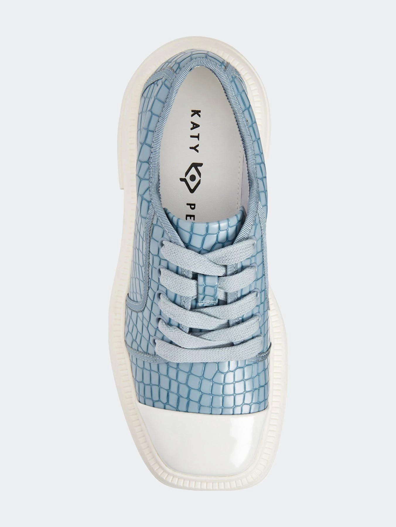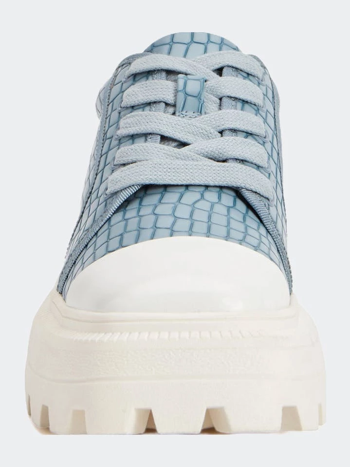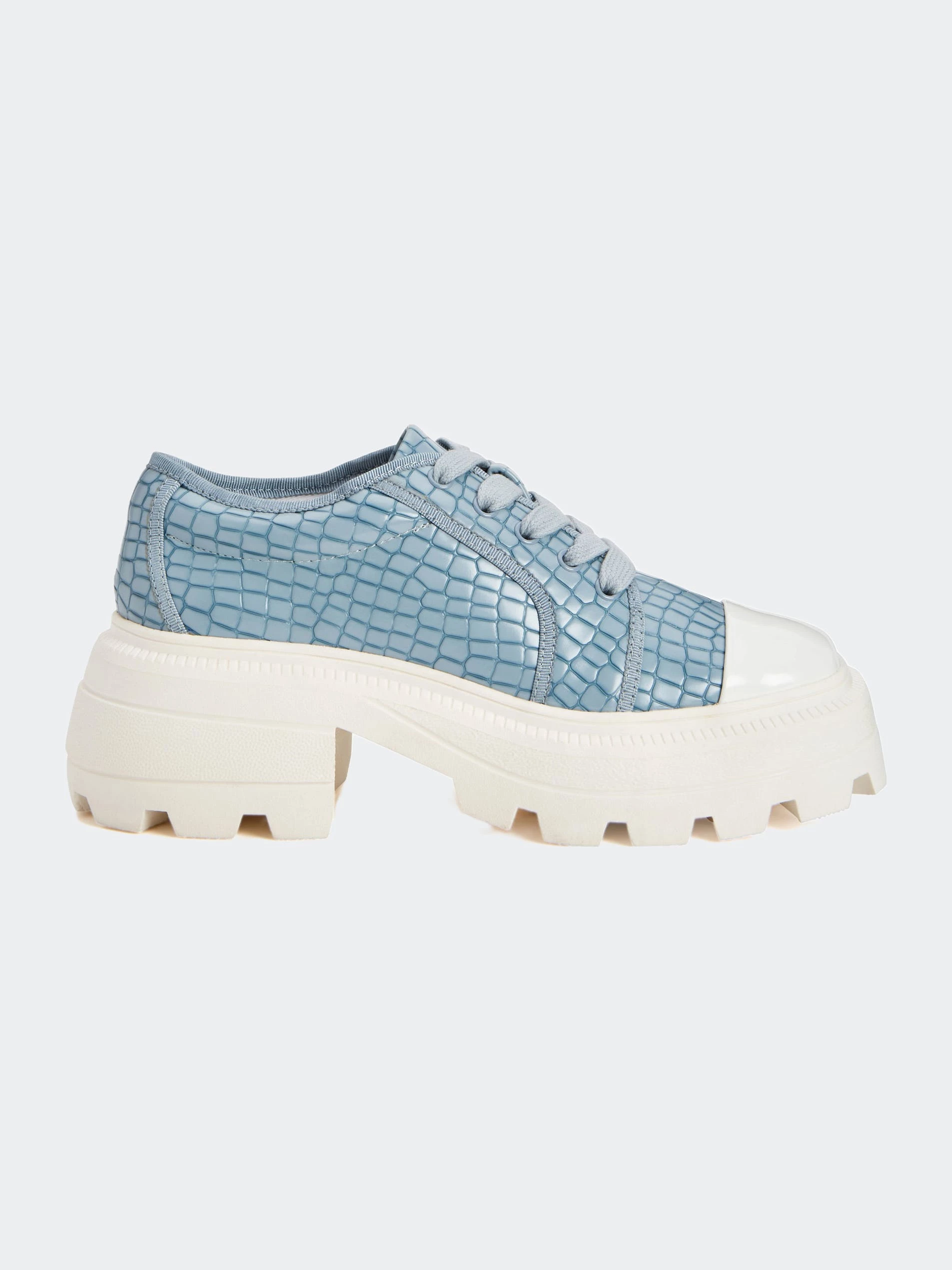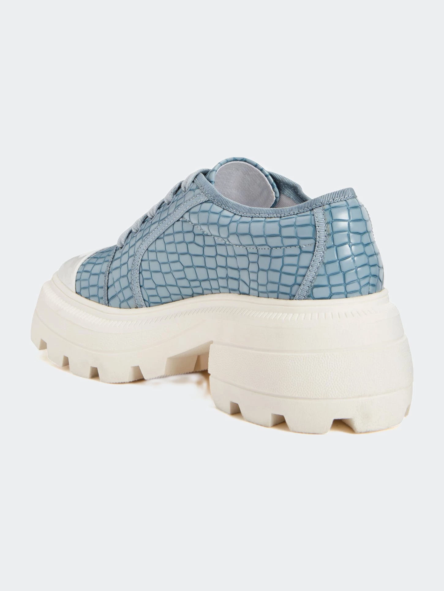 The Geli solid sneaker is a cool classic lifted by a lug sole and easy lace-up in Croco Emboss material with Patent toe-cap.