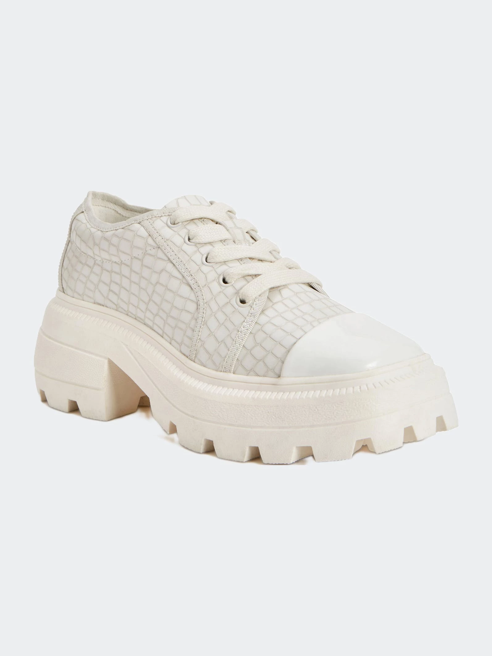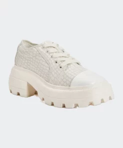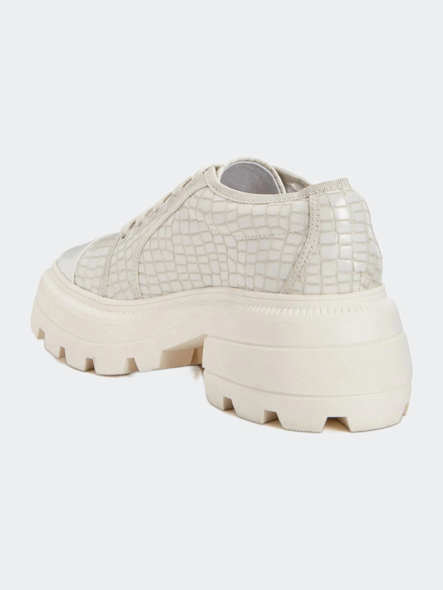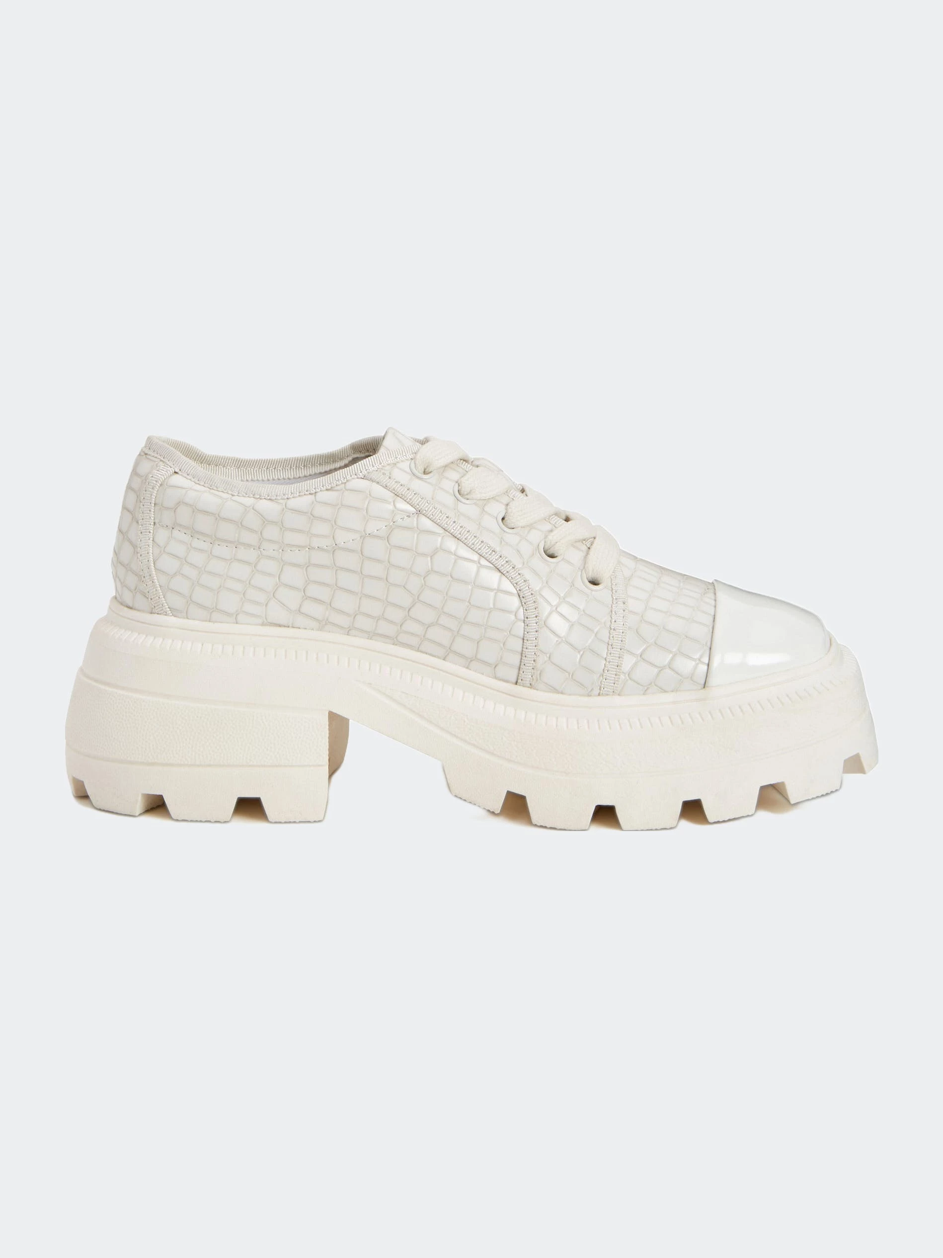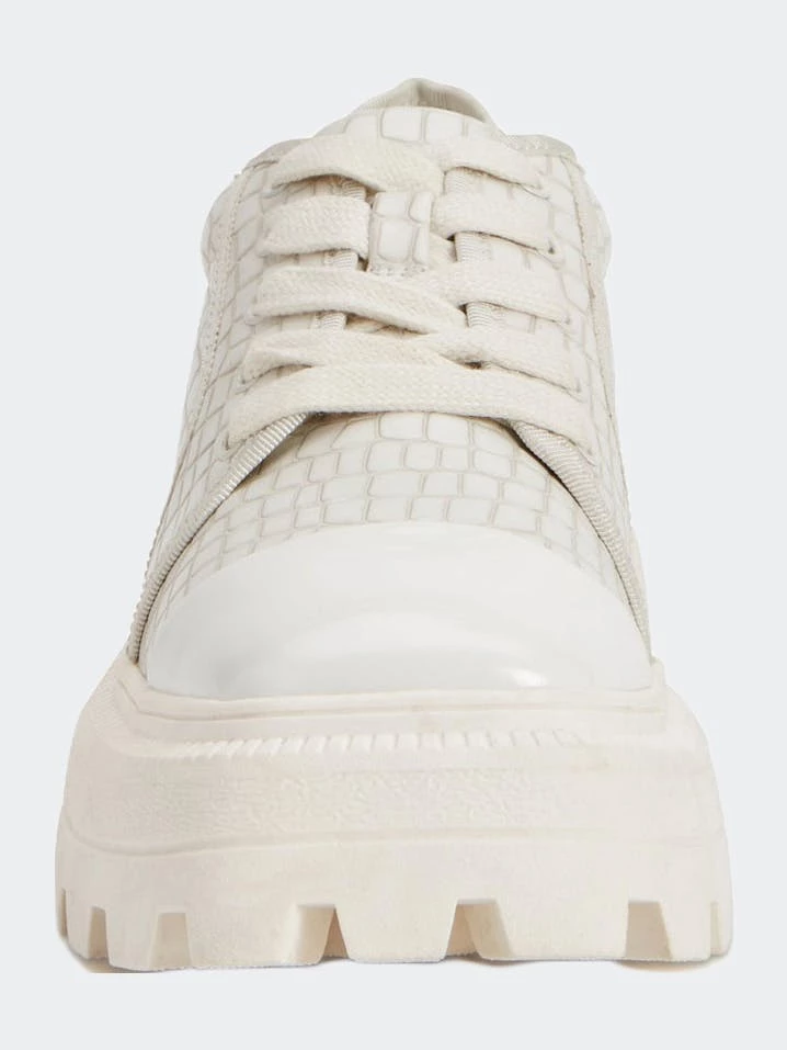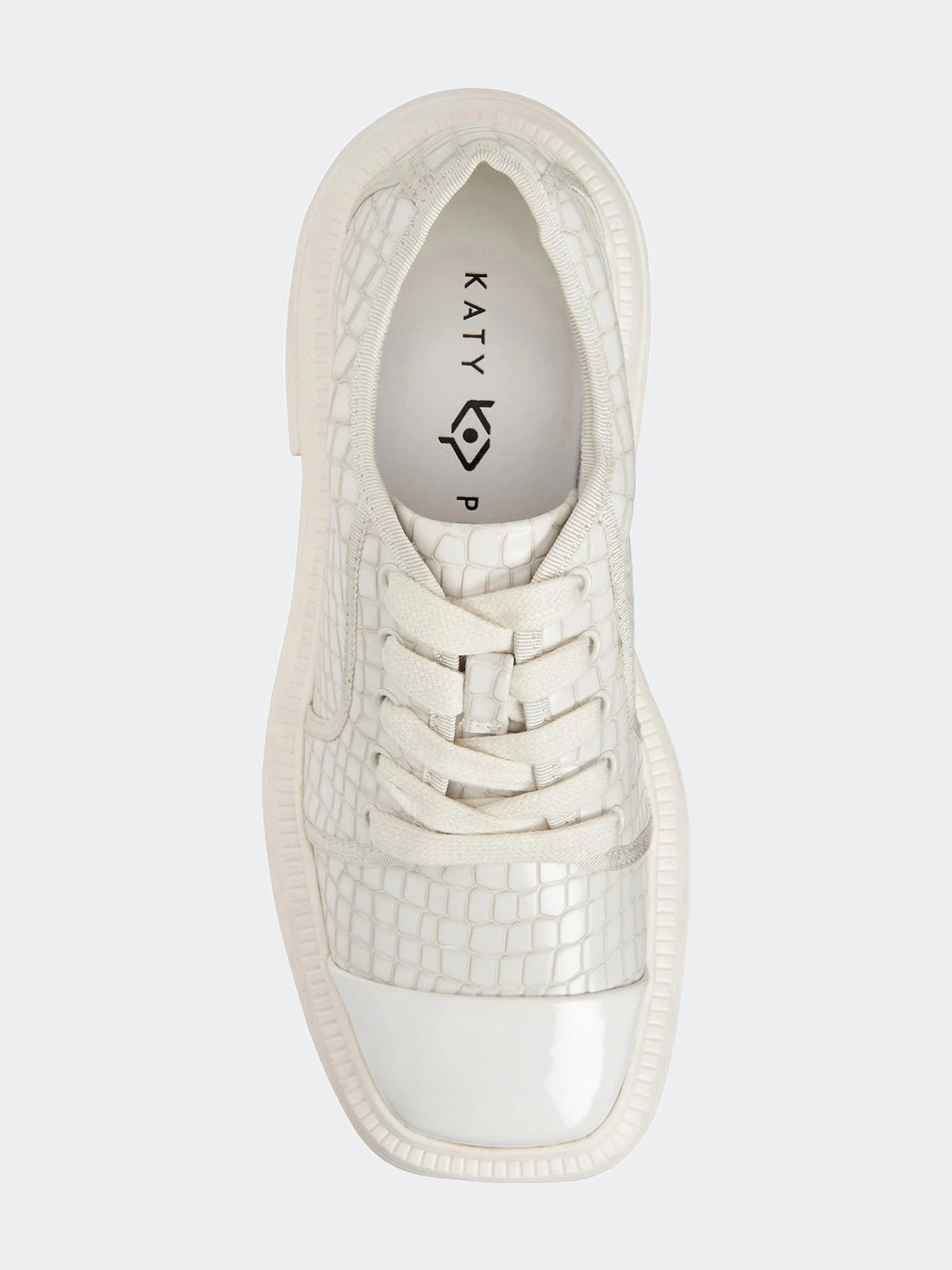 The Geli solid sneaker is a cool classic lifted by a lug sole and easy lace-up in Croco Emboss material with Patent toe-cap.