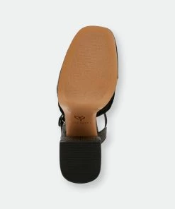 – High heel platform sandal with adjutable buckle quarter strap detail and woven material- Fabric upper- Man-made lining- 4 inch heel height .8 inch platform height