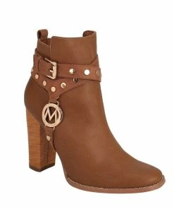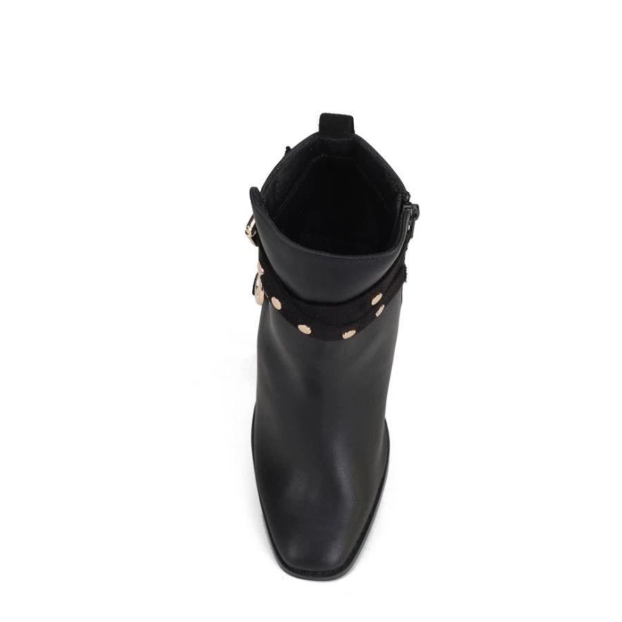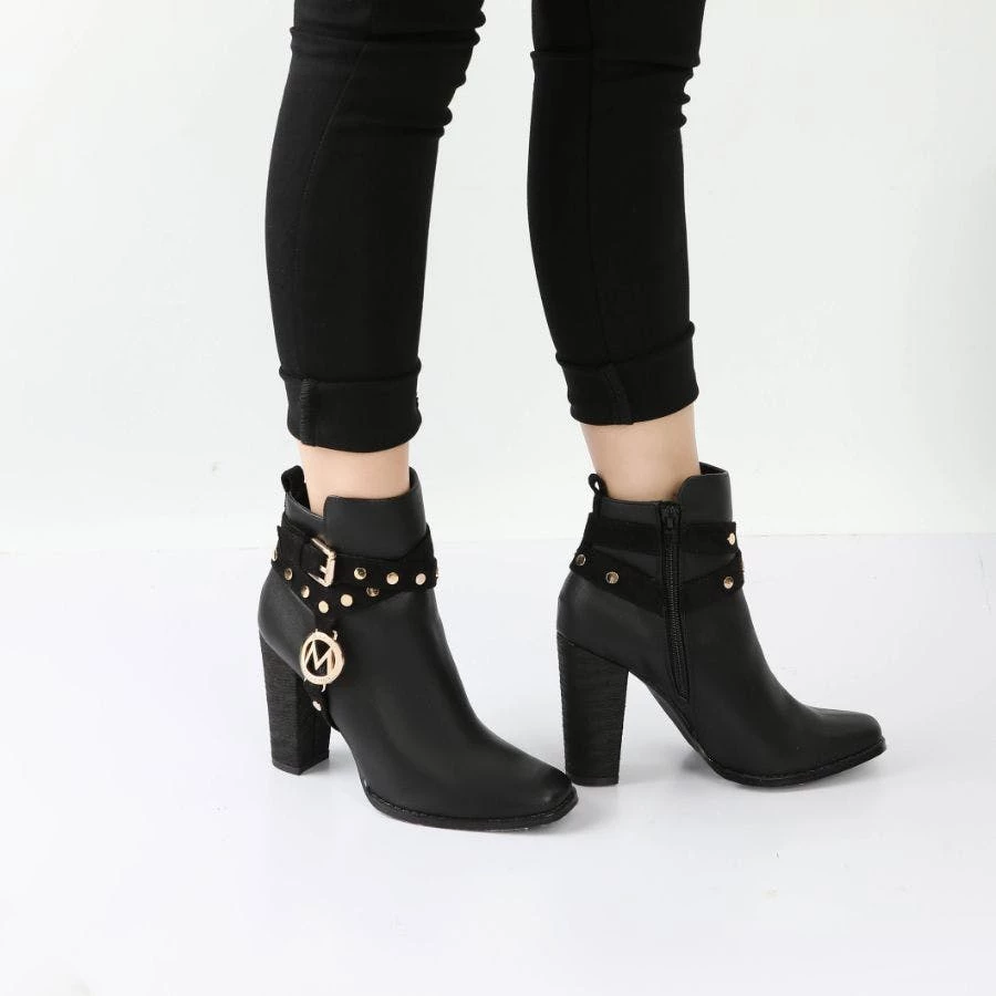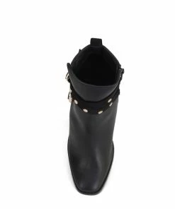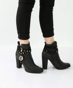 Step out and boot up in these sleek ankle boots designed in the season’s trendy square toe silhouette. Crafted from smooth high-quality vegan-leather, with studded crossover straps combined to luxe effect, while a stacked heel provides a comfortable lift. The Brooke Ankle Boot comes with a decorative signature circle emblem. A versatile day-to-night pair.
