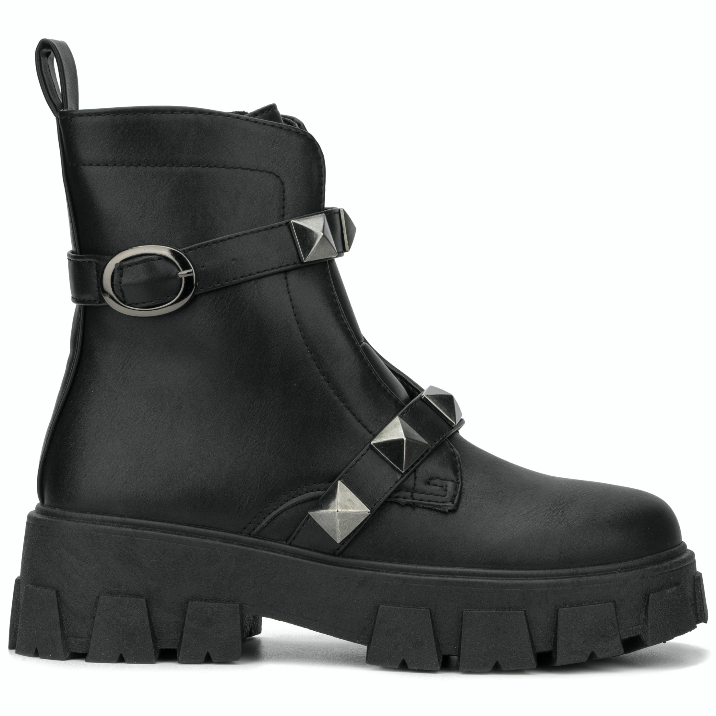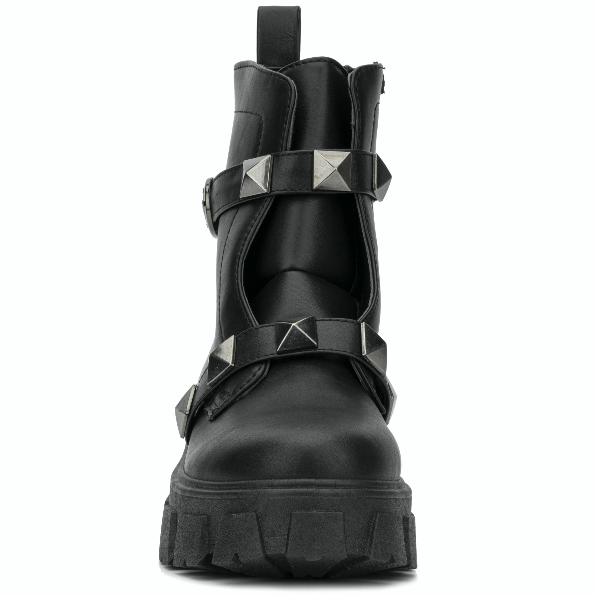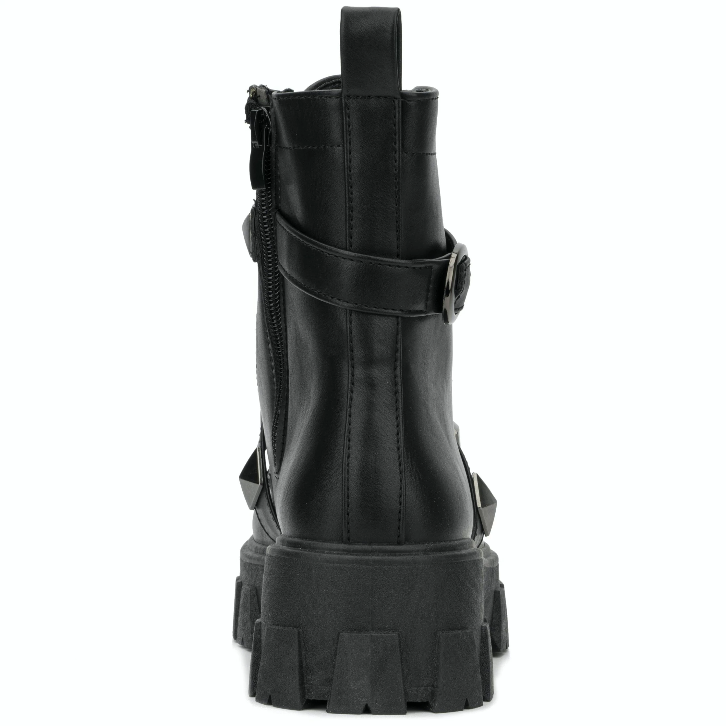 Set your standards high with the comfort of the Willa combat boots. Inviting studs and buckle accents bring and edgy vibe.
