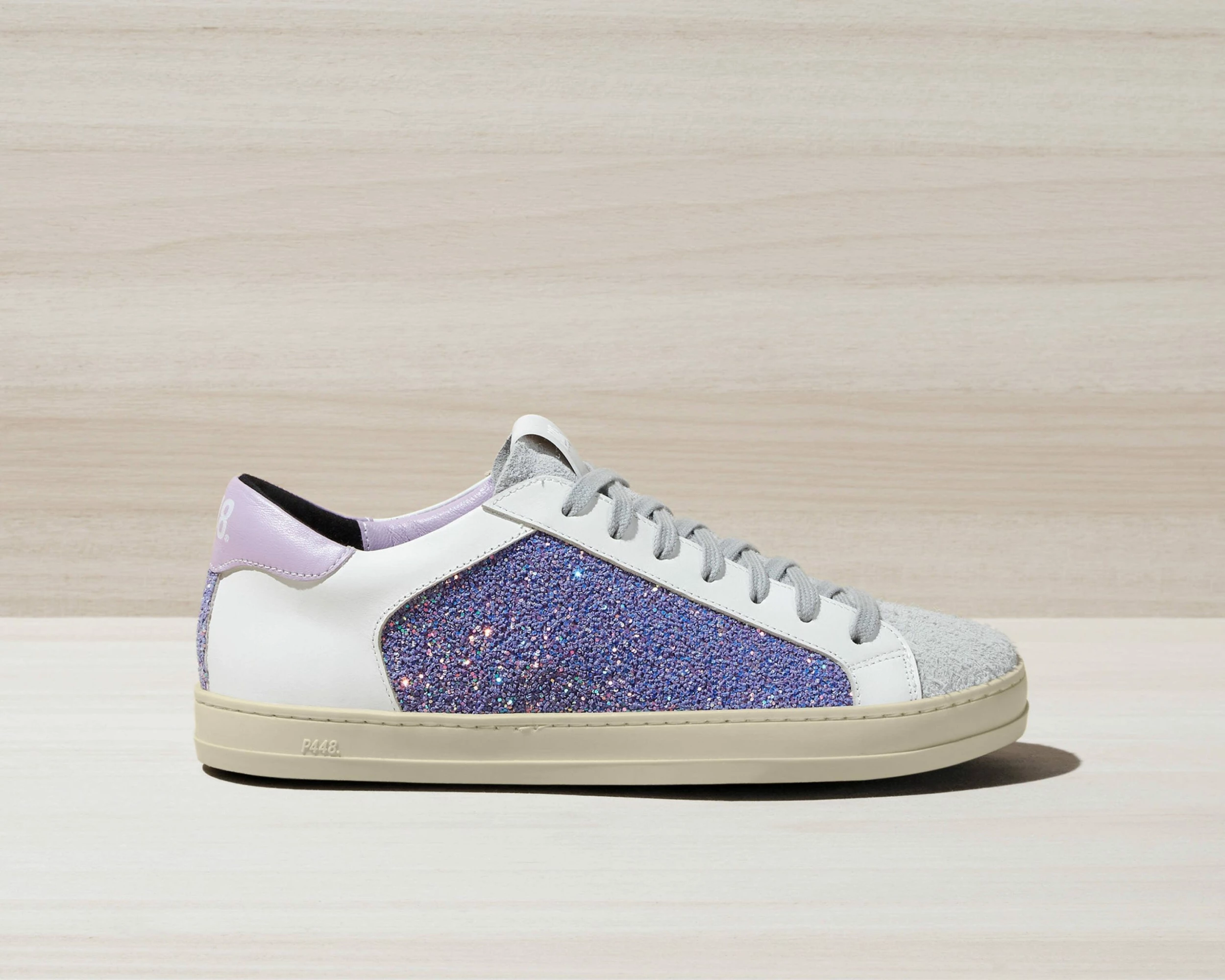 Shine brighter, bigger, better. The John Melrose reimagines our core staple low-top silhouette in iridescent lavender multi-glitter. Don’t you dare dull your sparkle for anyone or anything.