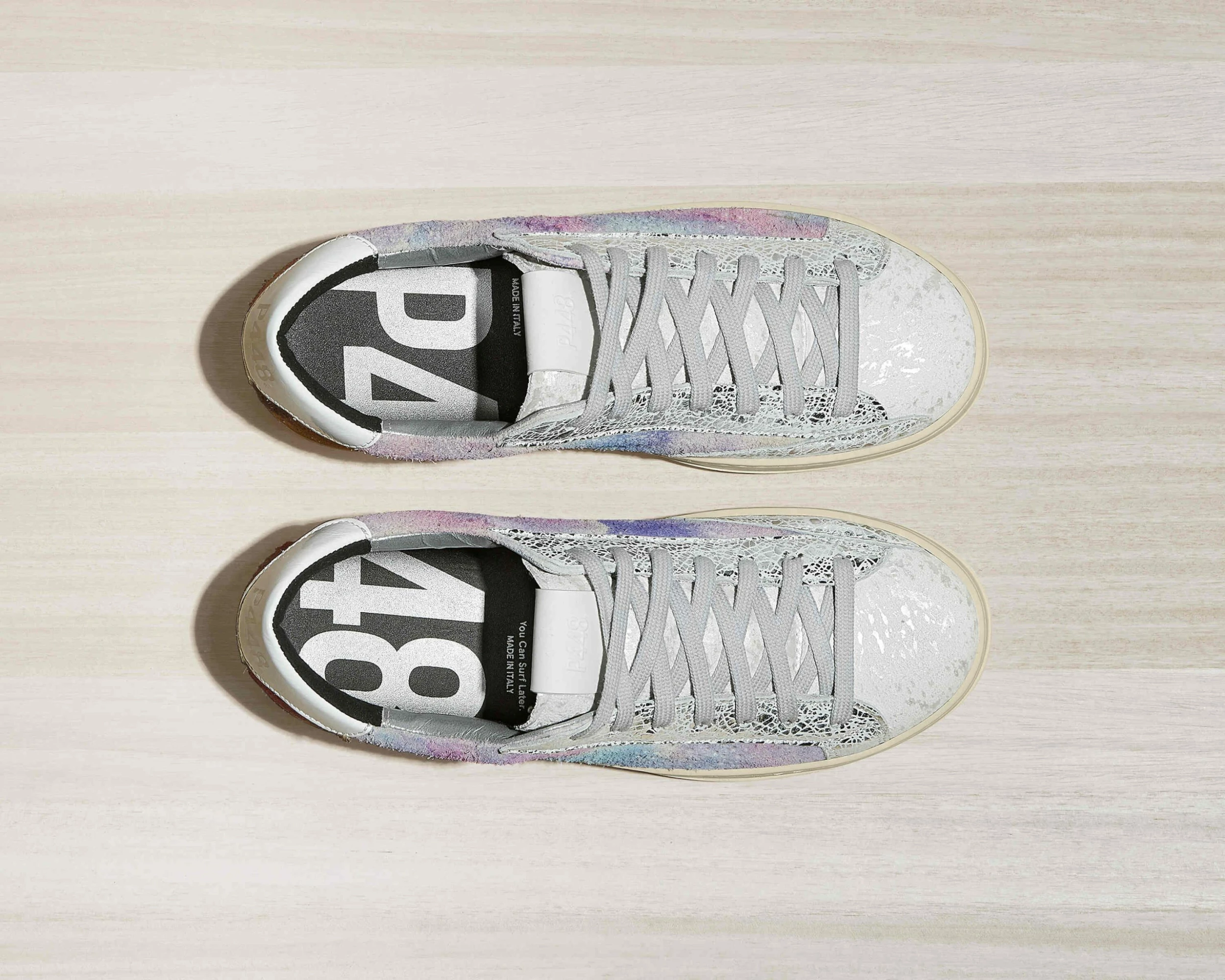 – Blue & pink tie-dye suede upper with P448 perforated logo
