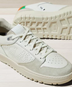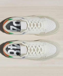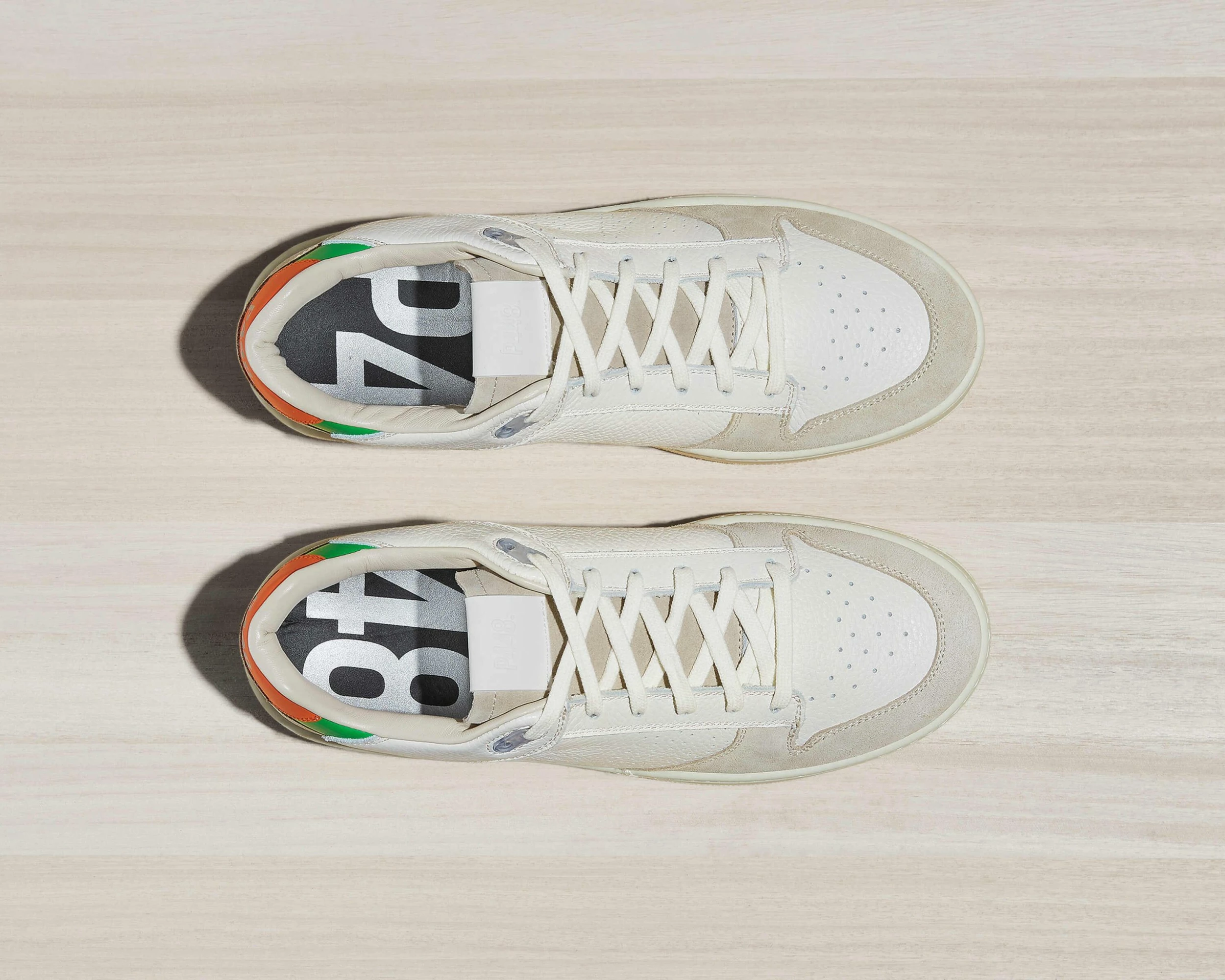 The Mason White/Fluo features white printed leather and beige suede with vivid details in fluo orange and green. Because even minimalist neutrals need a neon moment from time to time.