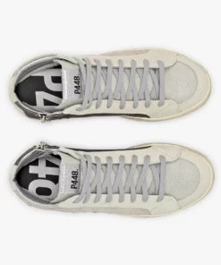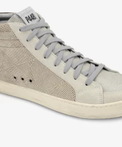 – Outside upper in laser-cut beige suede with metallic gold underlay