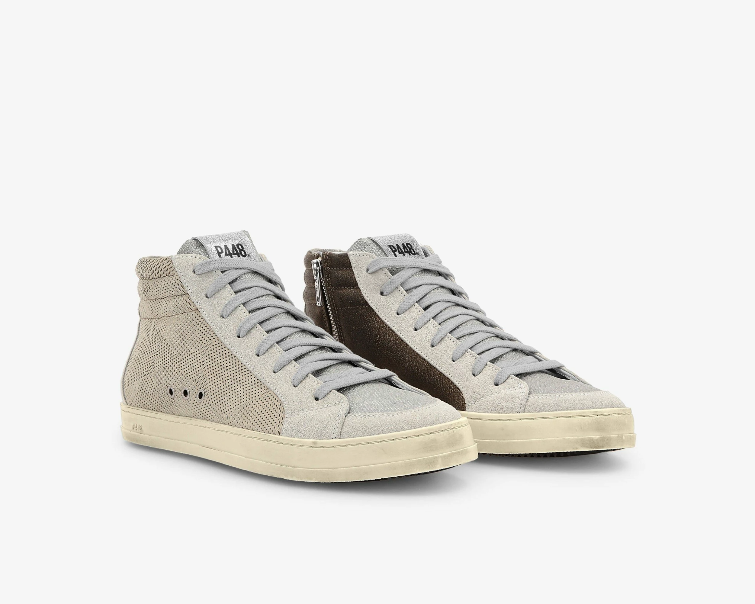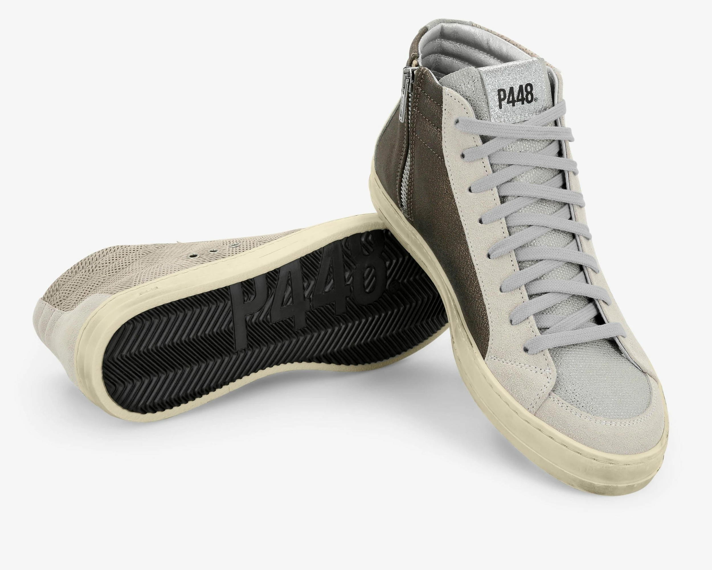 Expect the unexpected. Meet the Skate Prisma, featuring a beige suede outside upper with a metallic gold underlay, a metallic bronzed leather inside upper, a beige suede tongue, cashmere suede trim, toe and heel tab and grey cotton laces.