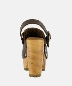 – Wooden block high heel clogs