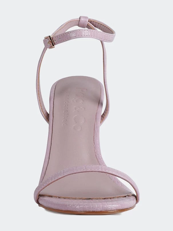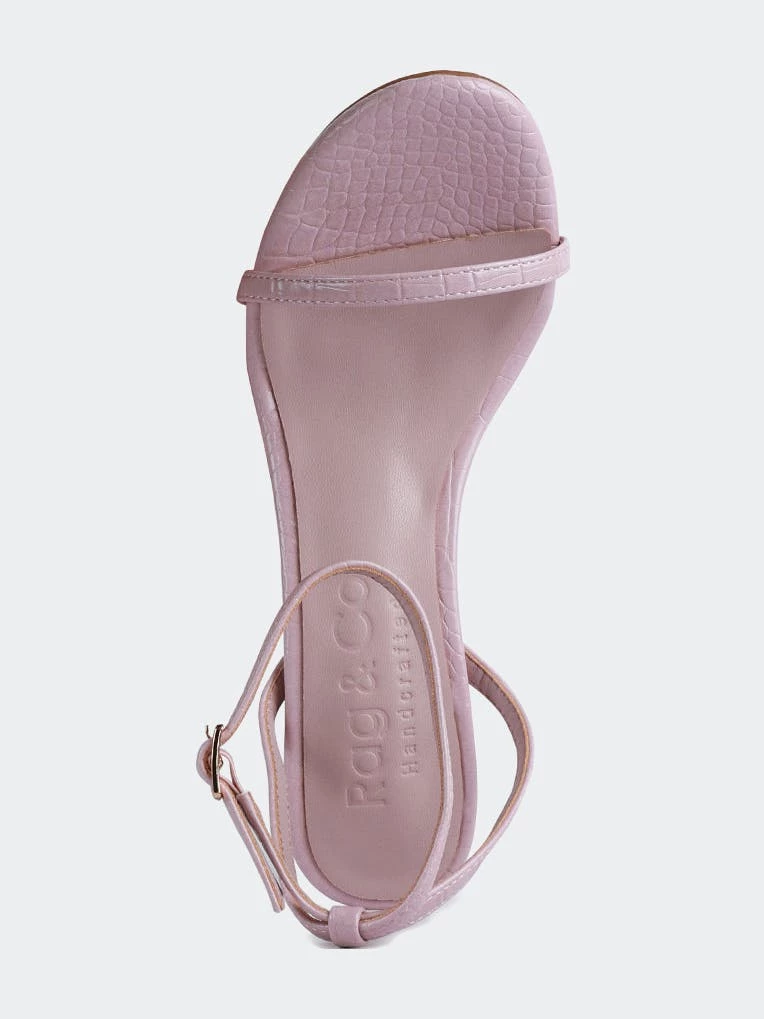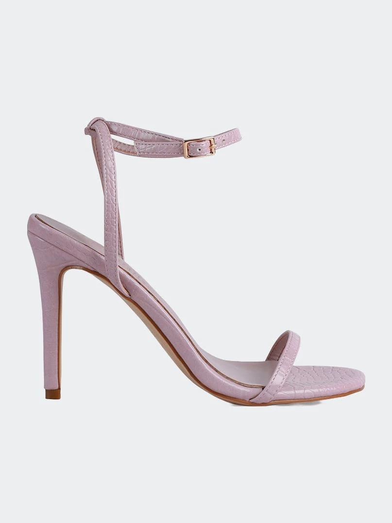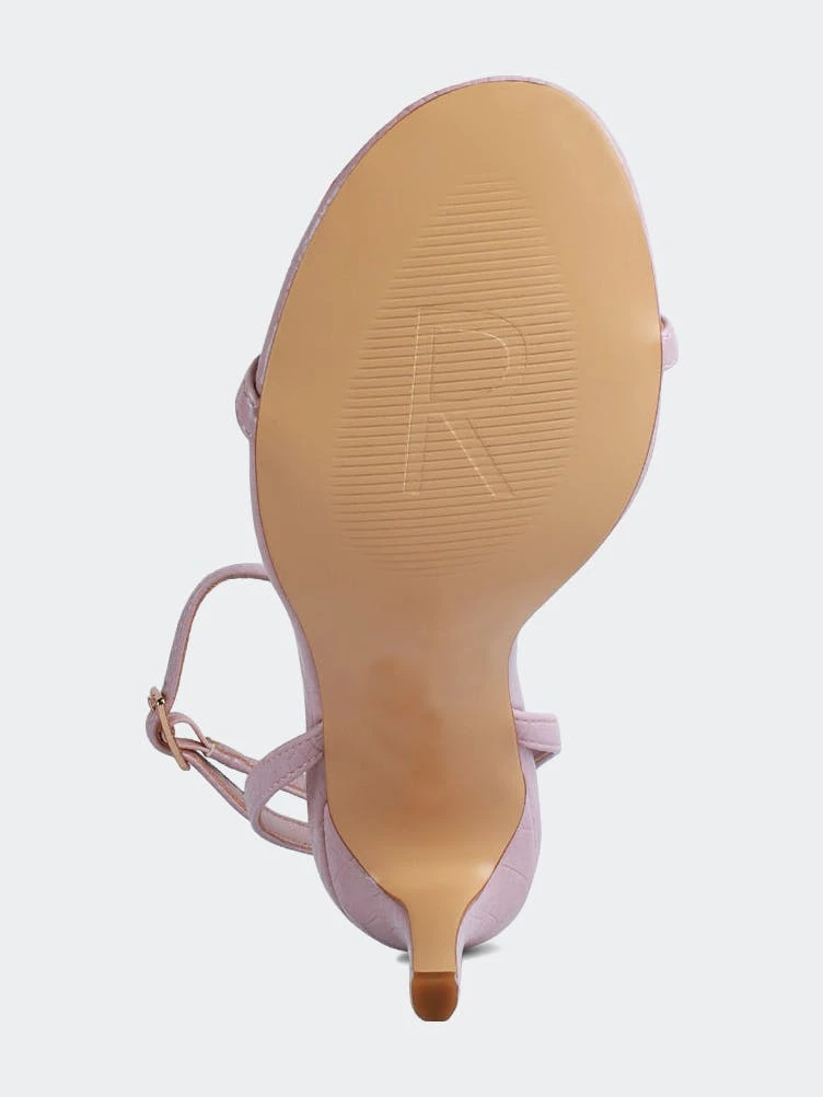 High heeled casual sandal in beautiful Croc textured fine leatherette. Comes with pin buckle fastening at ankle. Comes with soft cushioning which cuts strain.