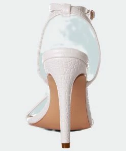 High Heeled Casual Sandal in beautiful Croc textured fine leatherette. Comes with pin buckle fastening at ankle. Comes with soft cushioning which cuts strain.