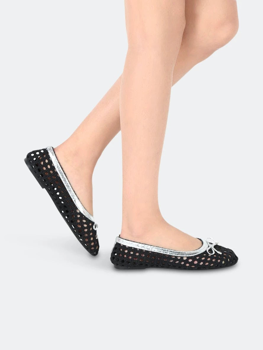 Buy this trendy pair of flat cotton mesh ballerinas for a pretty addition to your collection.