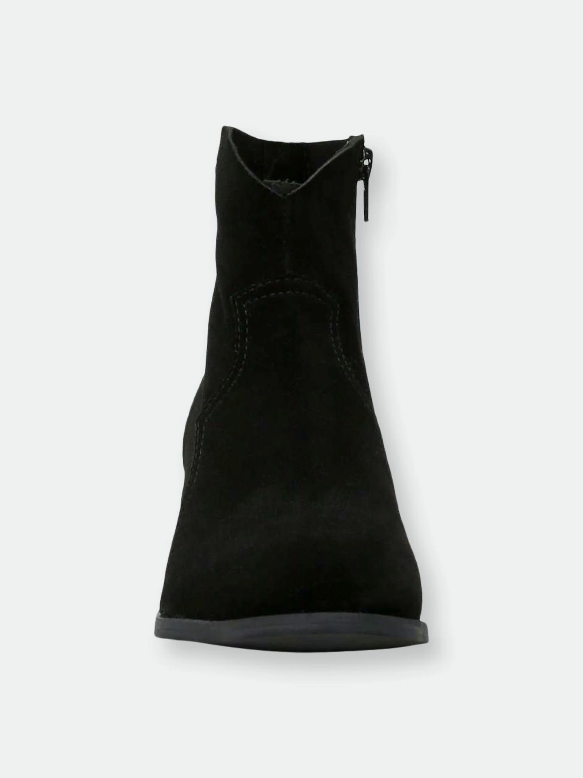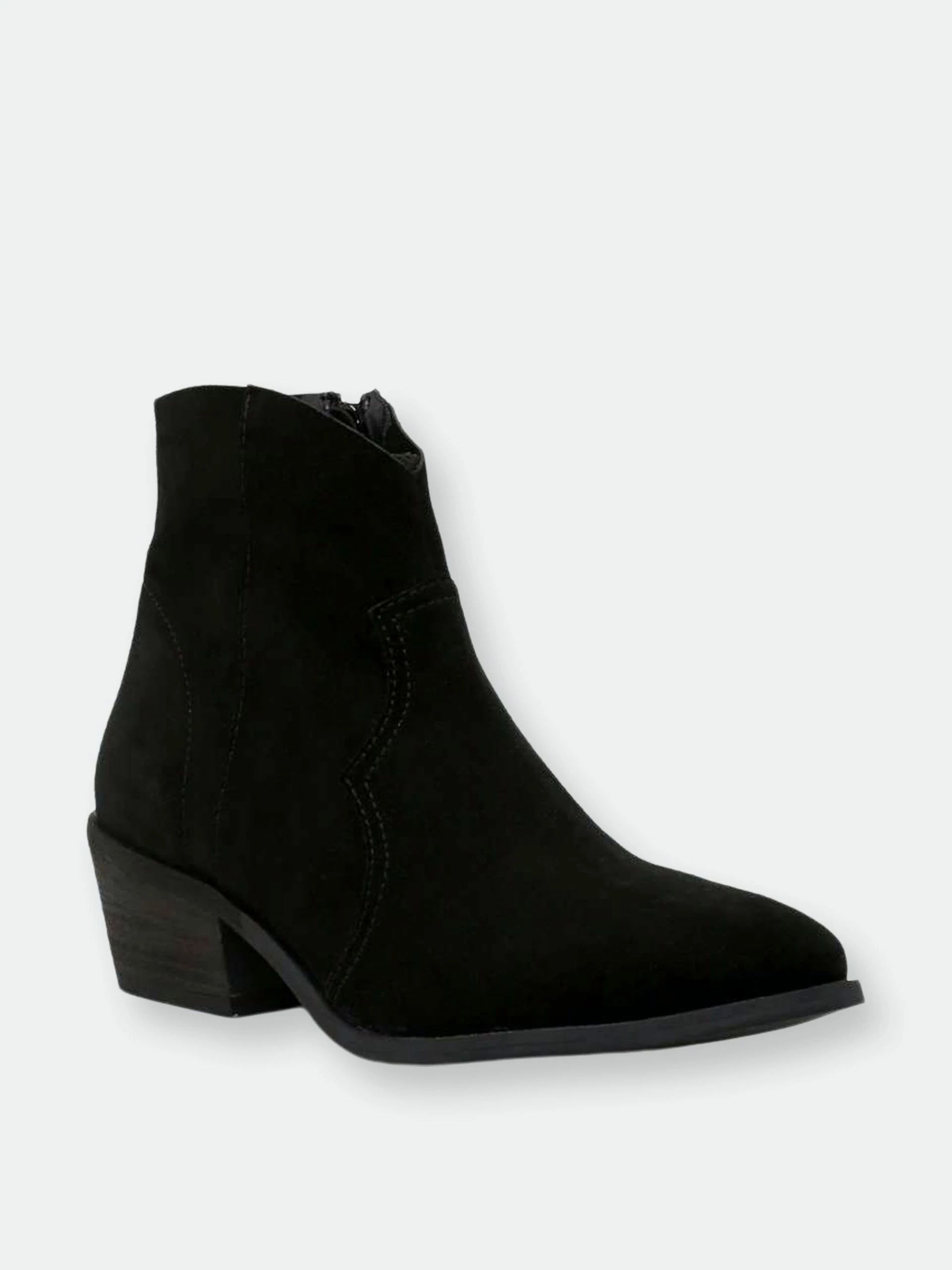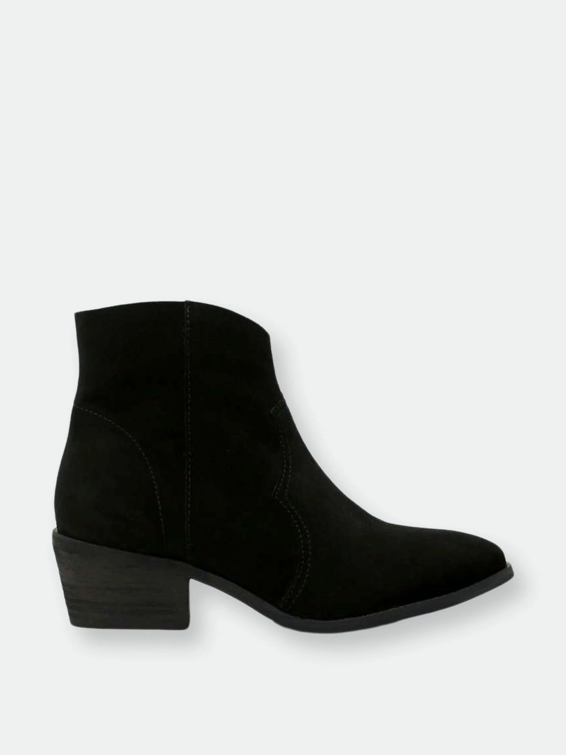 The Brisa bootie from Rag & Co flaunts sleek western styling while still staying versatile. A soft suede construction is finished with an asymmetrical topline and chunky block heel for your new favorite ankle boot.