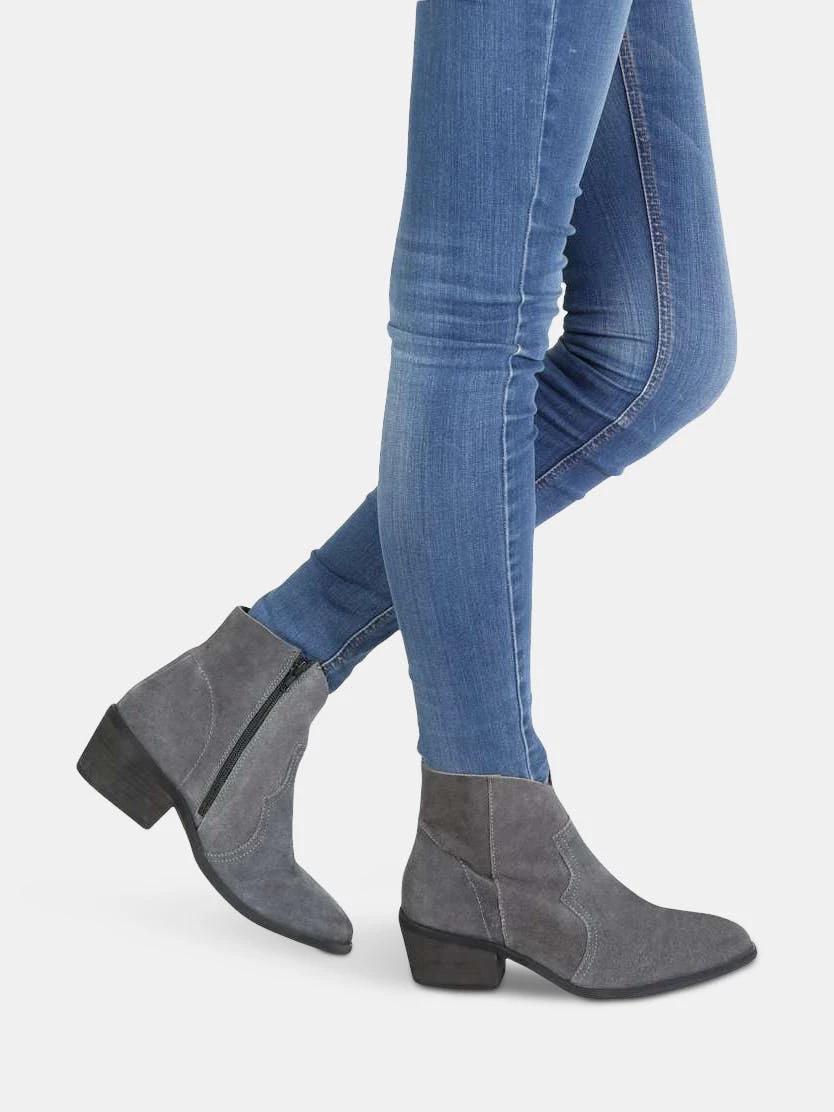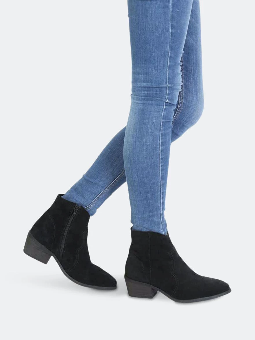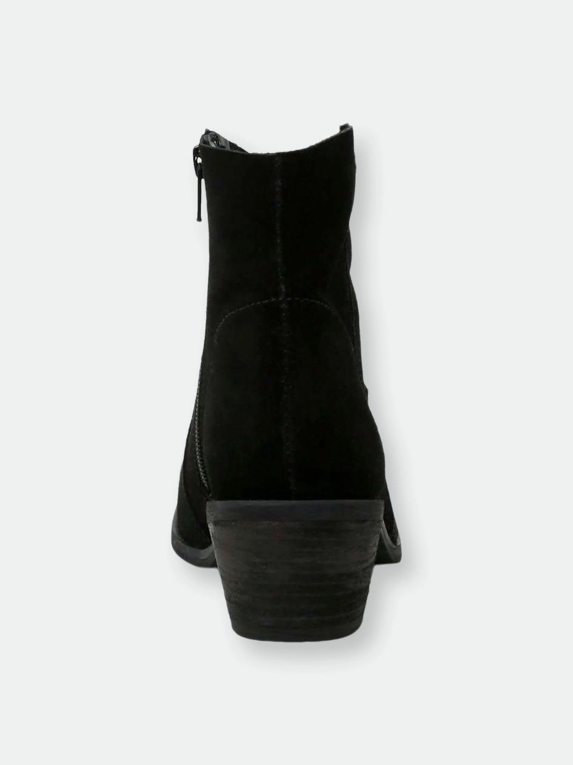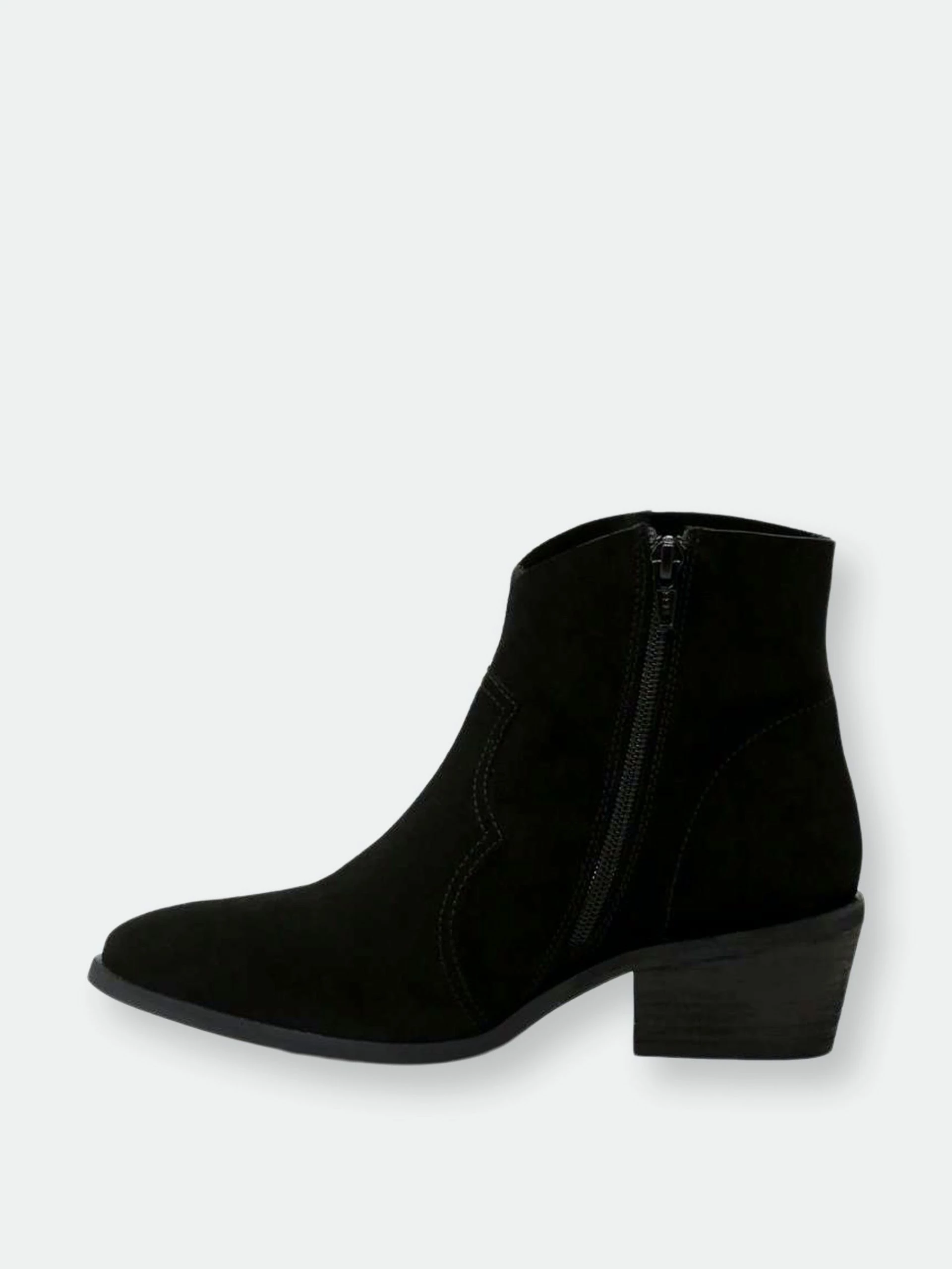 The Brisa bootie from Rag & Co flaunts sleek western styling while still staying versatile. A soft suede construction is finished with an asymmetrical topline and chunky block heel for your new favorite ankle boot.
