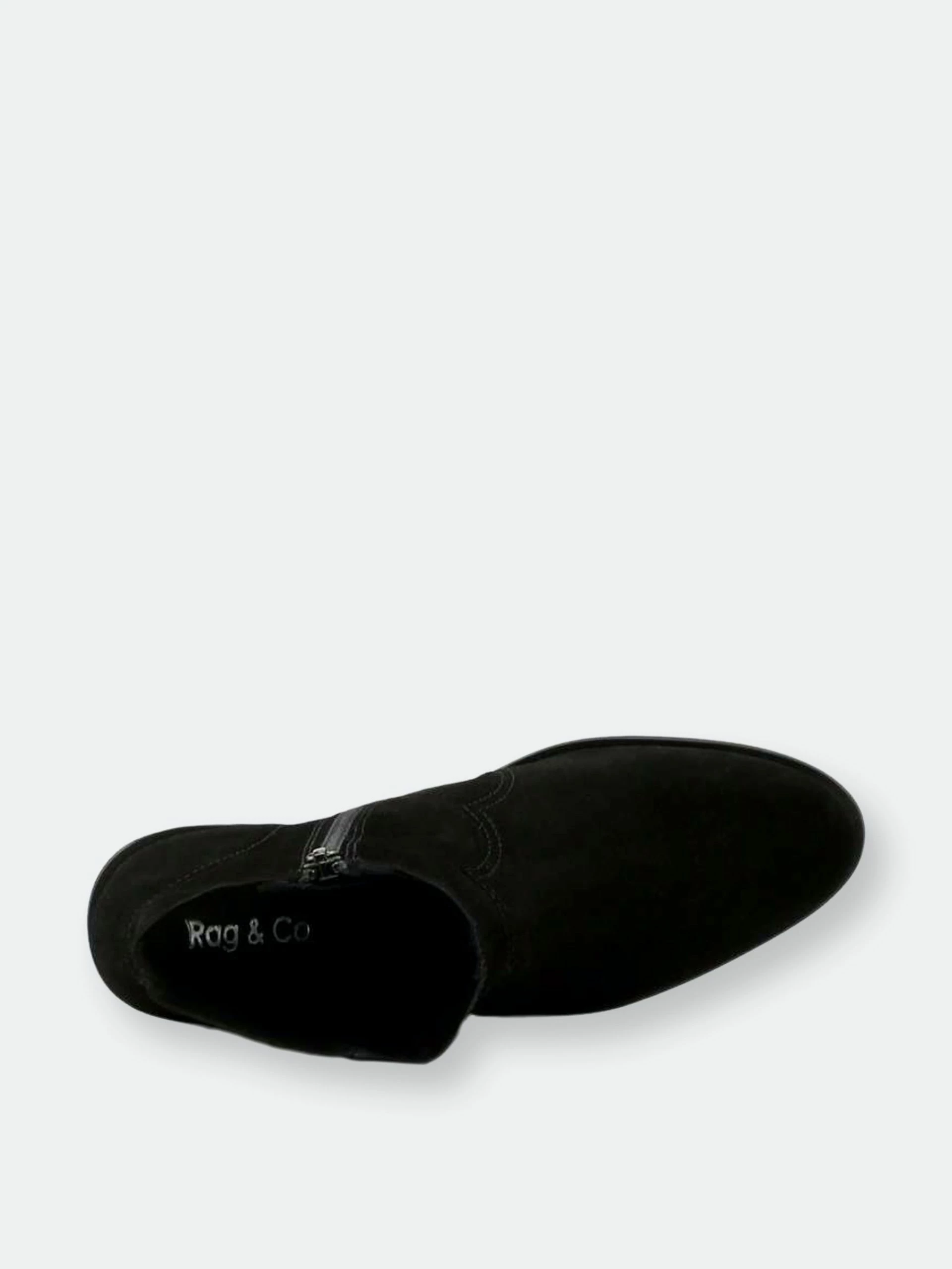 The Brisa bootie from Rag & Co flaunts sleek western styling while still staying versatile. A soft suede construction is finished with an asymmetrical topline and chunky block heel for your new favorite ankle boot.