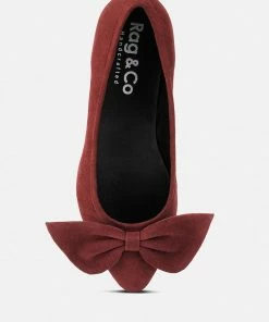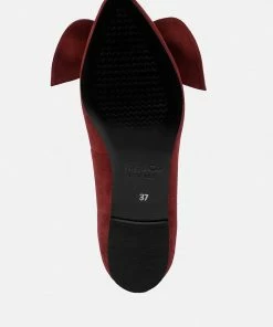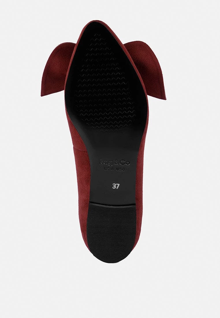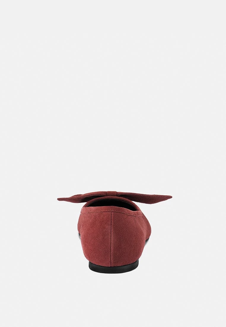 Be dreamy and all girl-ish in this pair of leather ballerina flats. The suede leather handcrafted footwear is charmer, keeps feet at rest and is enhance with big oversized stable bows on top. The bows stay firm and add to the look.