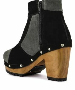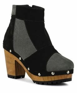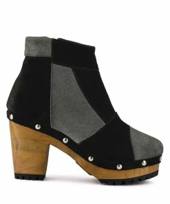 Rag & Co Huron Grey Fine Suede Patchwork Ankle Boots