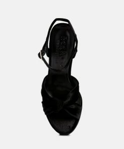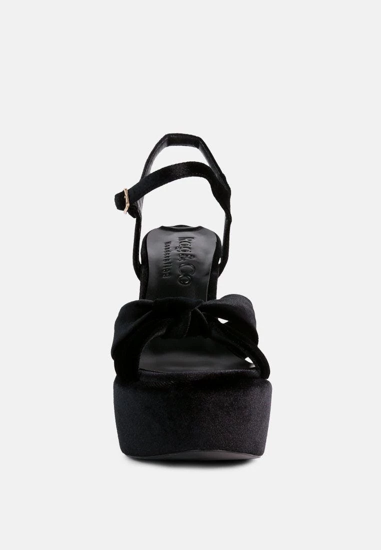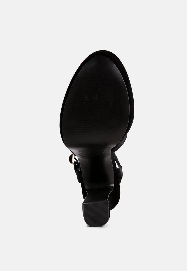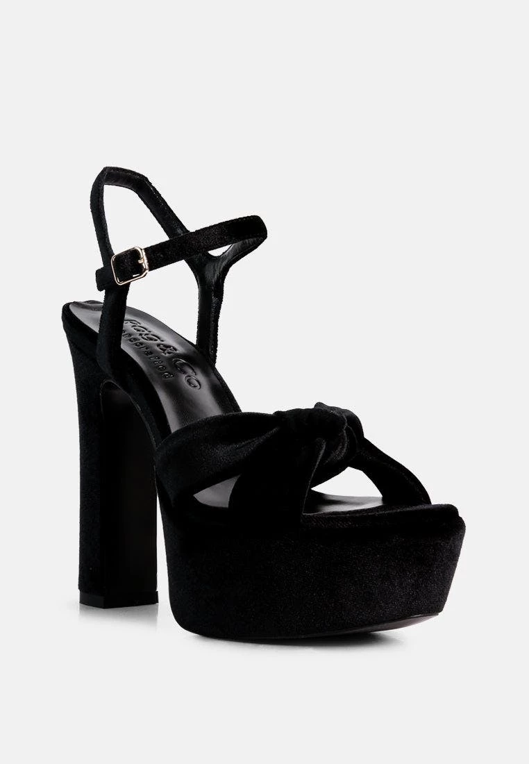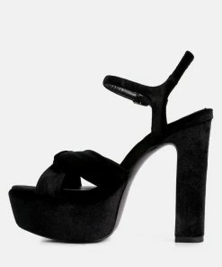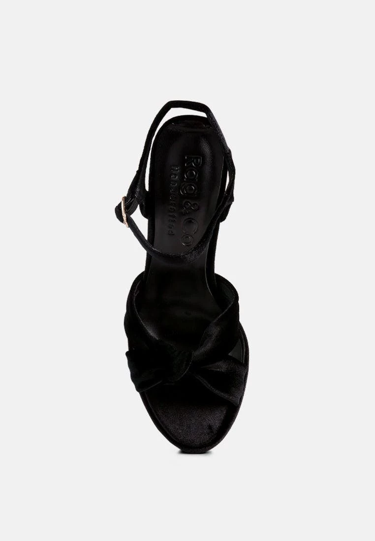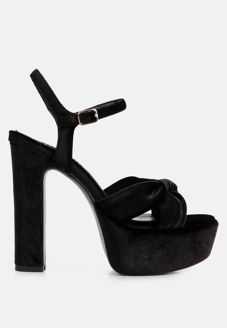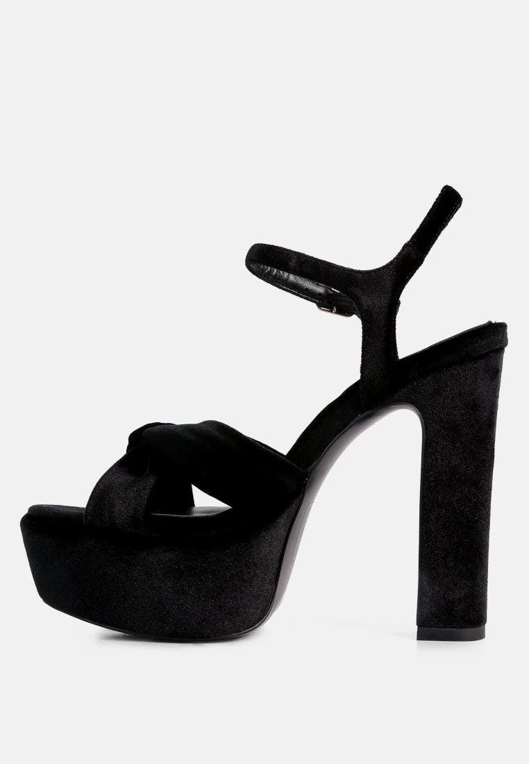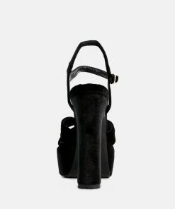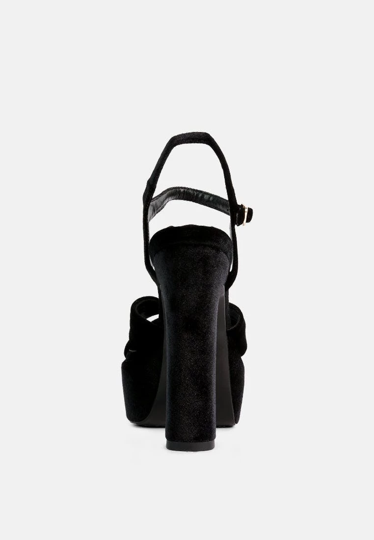 Go bold and sassy with these super luxe handcrafted velvet high heeled block sandals built on raised platforms which give it additional height apart from the block heels. The soft cushion innersole has soft padding and cuts stress. It has ankle strap with pin buckle closure which secures feet well.