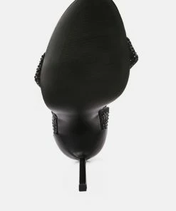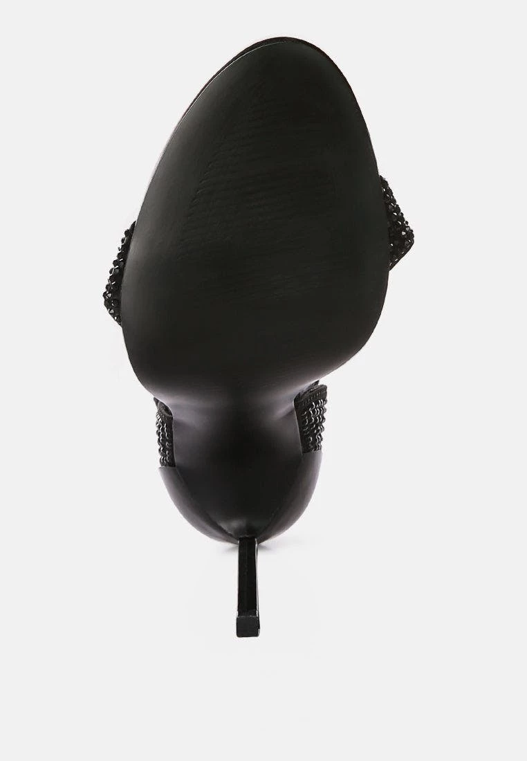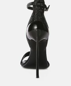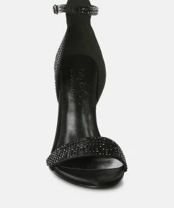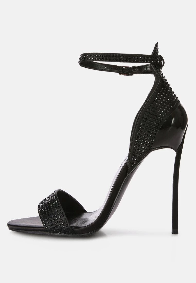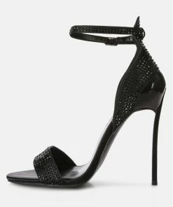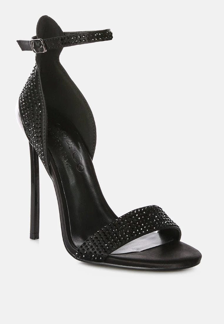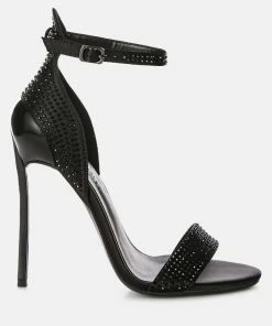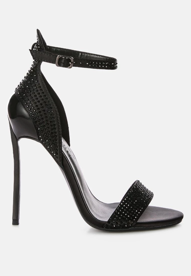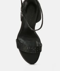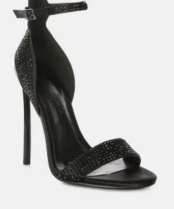 This pair of stiletto sandals has rhinestone accents with embellishment on the ankle to give it a grand look for weddings and Party dinners. The plush padding in the insole reduces heel stress.