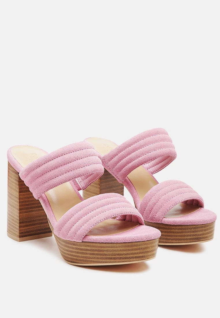 Double quilted suede strap slip-on sandal crafted on wooden stacks look elegant on feet. The cushioned insole keeps feet cool and takes off the pressure.Note: Due photographic lighting sources/your screen settings, colors of products may vary than actual product.