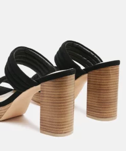 Double quilted suede strap slip-on sandal crafted on wooden stacks look elegant on feet. The cushioned insole keeps feet cool and takes off the pressure.Note: Due photographic lighting sources/your screen settings, colors of products may vary than actual product.