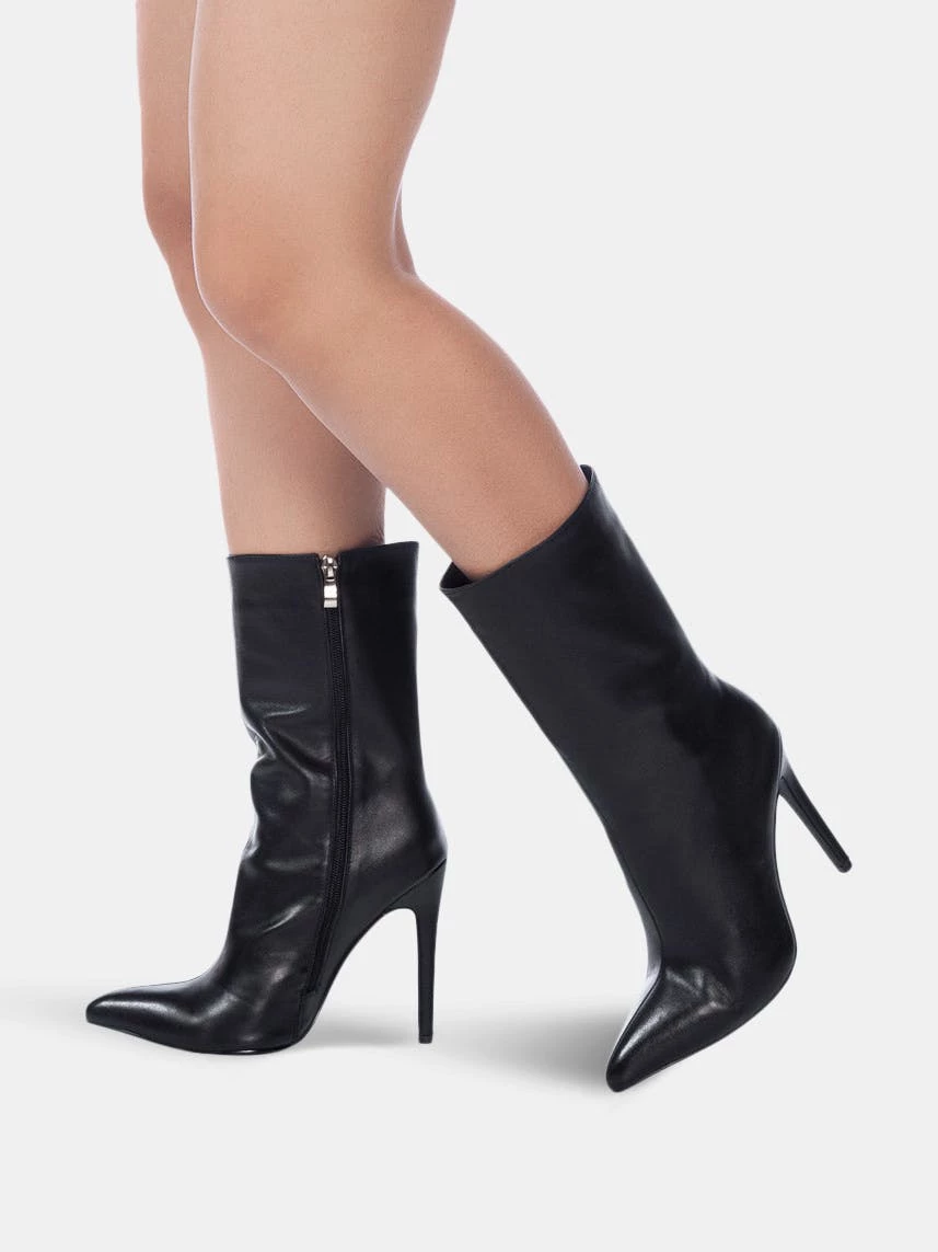 Goes above the ankle – this sharp pointed toe leather boot keeps warm, keeps stylish and is for keeps this winter.