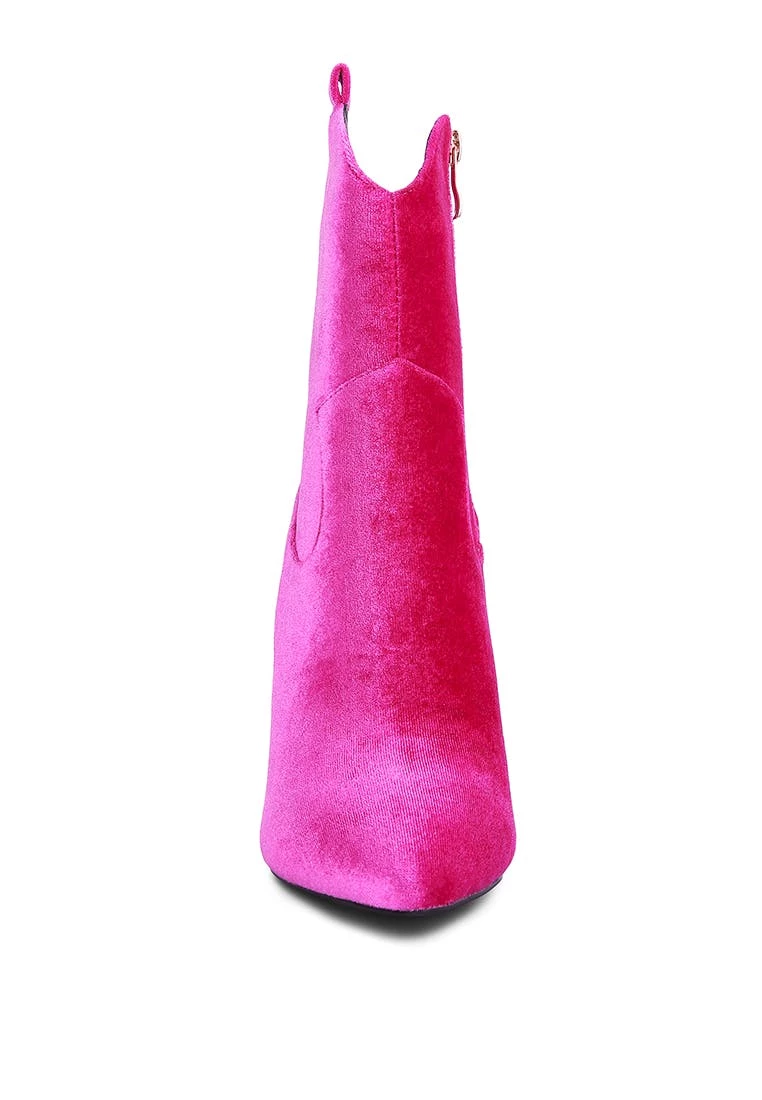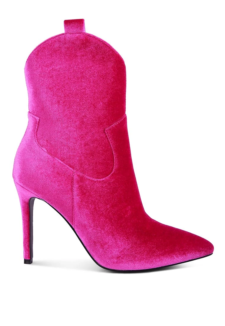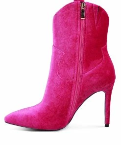 Absolute treat to the winter wardrobe: Bright fuchsia ankle cow girl boot adds much needed brightness to the dull winter. Comes with side zipper opening on the inside which makes it easy to wear. The high heeled boot has elasticated gussets which fit well along the ankle.
