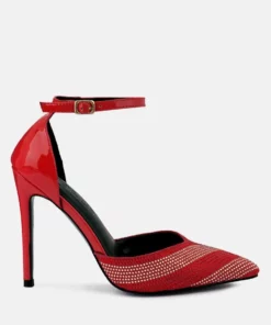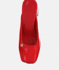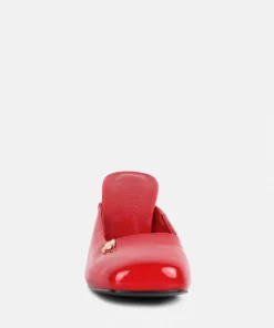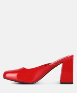 Rag & Co Neoplast Red Patent PU Block Heeled Mules Sandals
