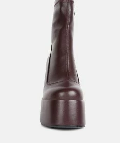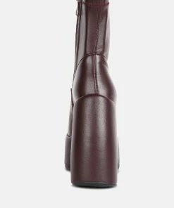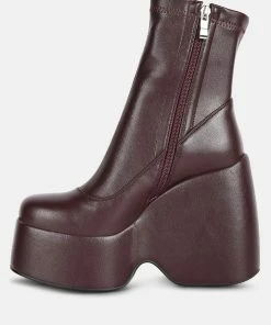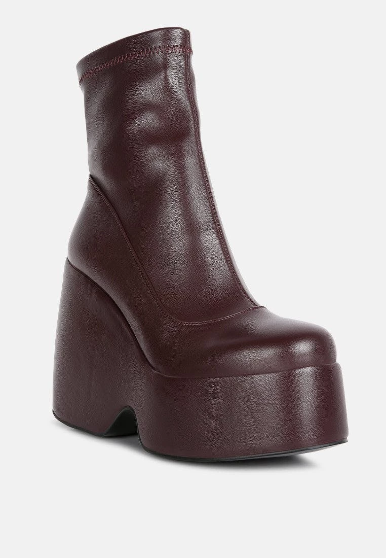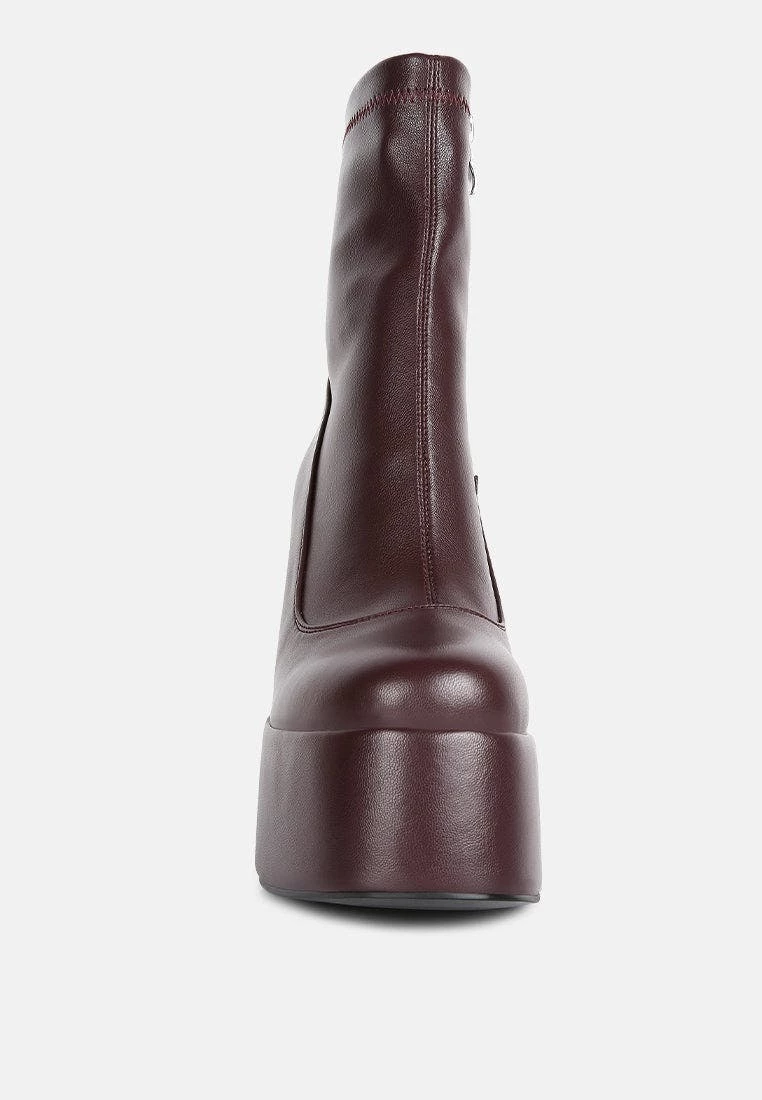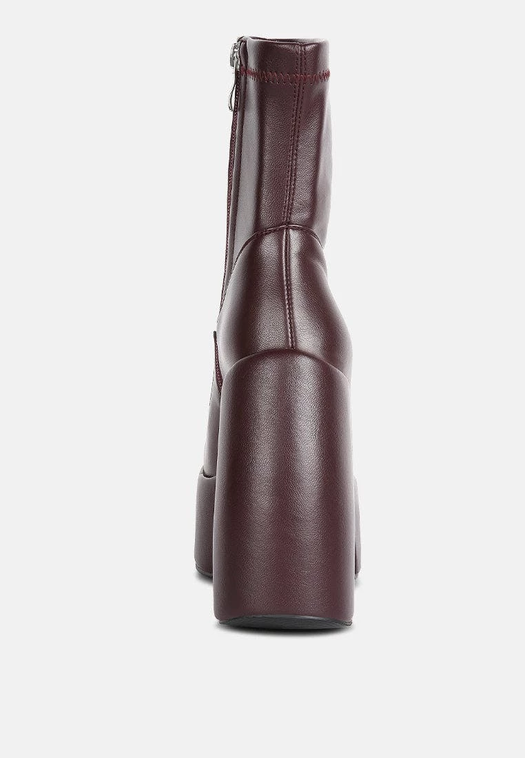 Lightweight statement high platform boot from Rag & Co. these ankle boots have side zipper detail which makes it easy to wear. It has comfortable round toe. The stretch leatherette is ultra comfy, flexible and molds as per your feet.