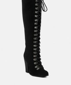 Handcrafted in high-quality genuine leather, this pair of high heeled calf boot has antique metal eyelets which exhibits a vintage charm. The side zipper opening makes it a comfy pair to wear. These are perfect as after party shoes or bachelorette heels.