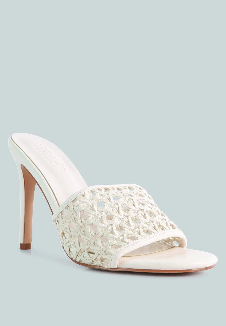 Soft Leatherette Raffia woven heeled slider sandals with lightly cushioned insole. Fits like dream and keeps feet relaxed.