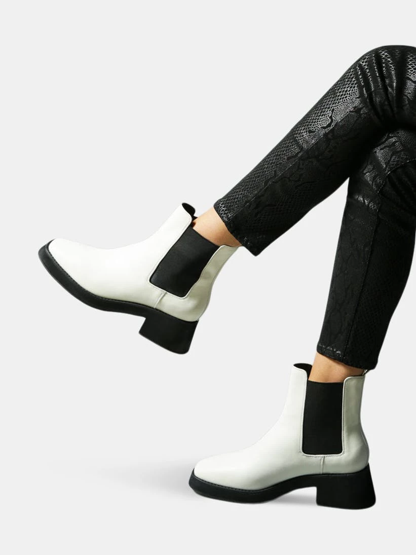 Chelsea Boot in block heel with a genuine soft leather construction. Well crafted for optimal rest to foot – sets along the foot curve well. Smart silhouette and cut – uplifts the look. Smart and Sleek structured silhouette, THERON Chelsea Ankle Boot is crafted from 100% fine leather and features a block heel that promises effortless style along with practical comfort.