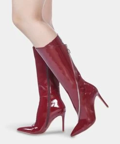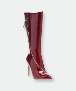 The calf boot with zipper detail around the shaft, this high heel winter boot is statement wear. Comes with an inner side zipper which makes it easy to wear.